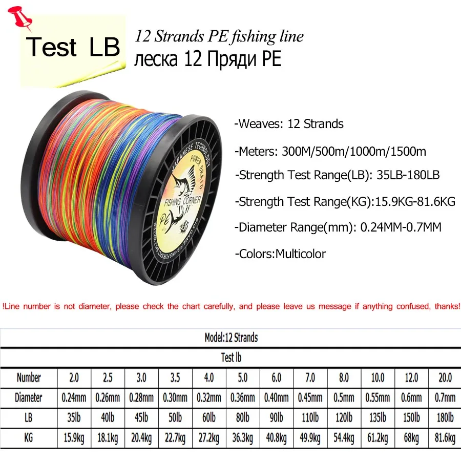 12 hilos 300m/500m/1000m/1500m línea multifilamento línea de pesca 35-180lb multicolor súper fuerte japon pe línea de linnha de pesca