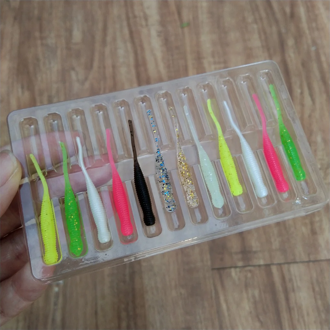 12 Uds 45mm 0,3g Señuelos de Pesca señuelo suave cebos artificiales Wobblers señuelos blandos Shad carpa pesca de silicona cebos blandos aparejos