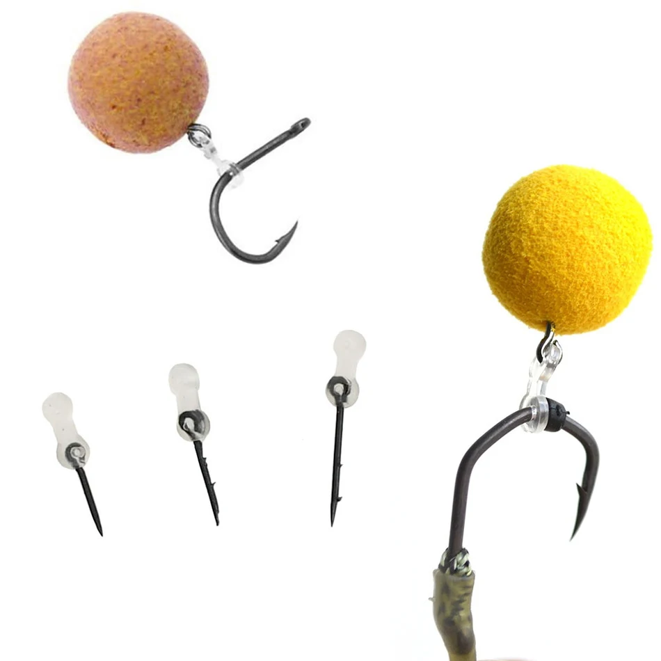12 Uds. De anzuelo de pesca de carpa con punta de cebo de Metal, Pin Boilie con aparejo de pelo Ronnie de maíz de goma transparente