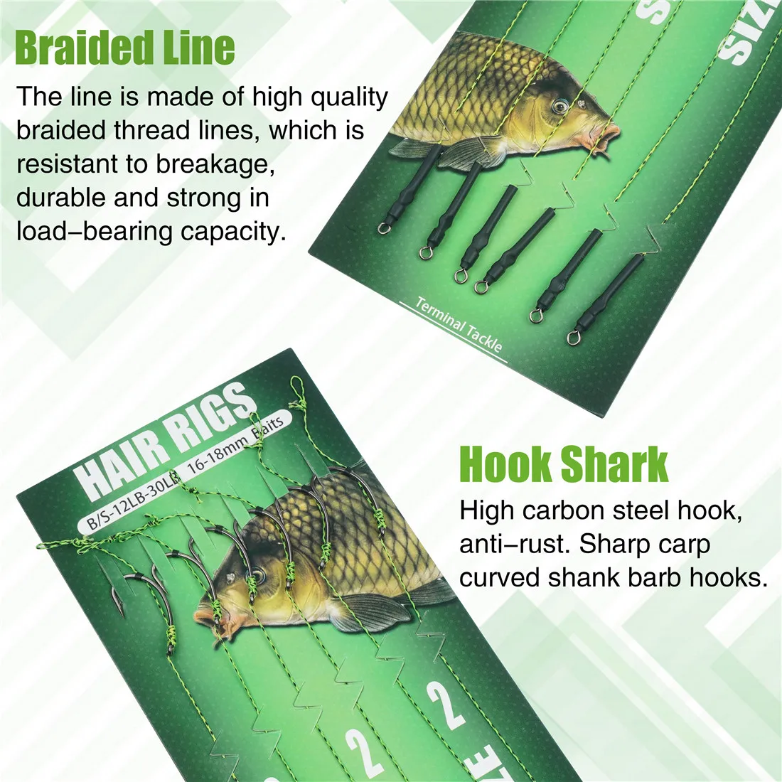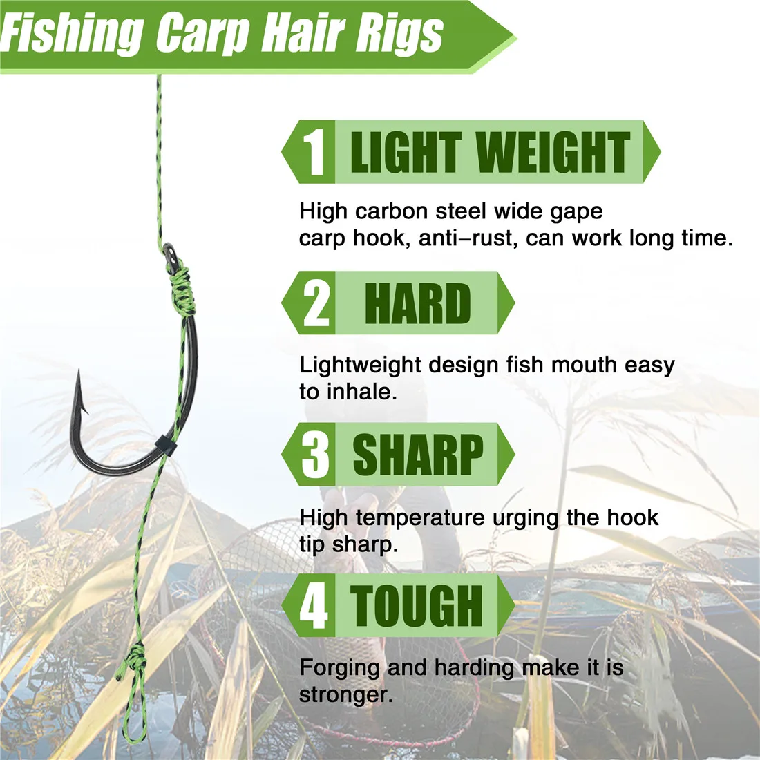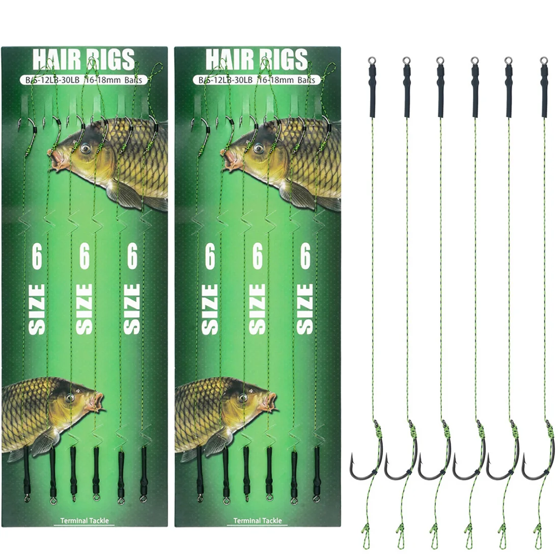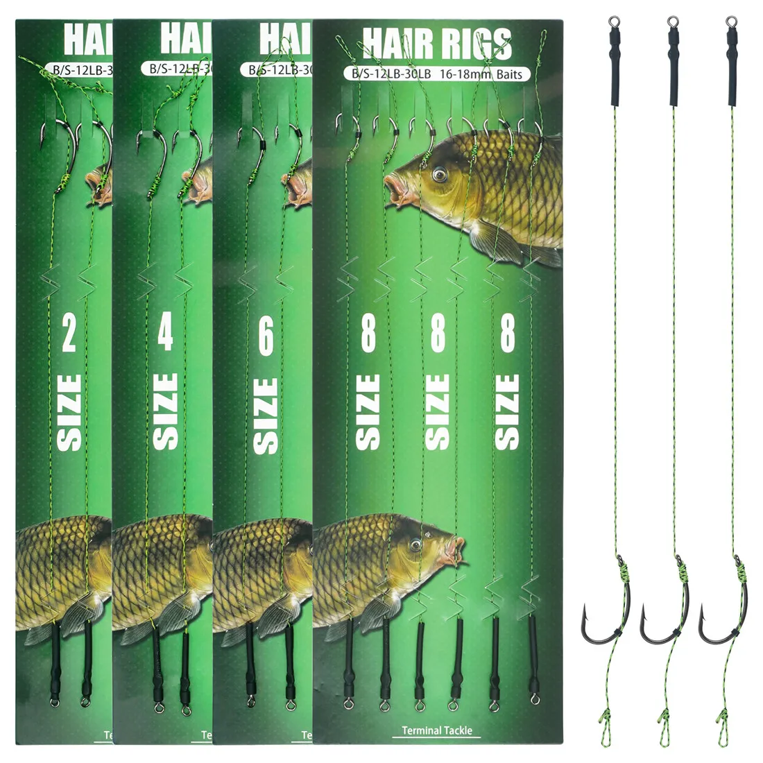 12 Uds líder ganchos de pesca de carpa, aparejos para el cabello con línea trenzada, Boilies listos, cebo atado, alimentador, grupo, accesorios de gancho púas