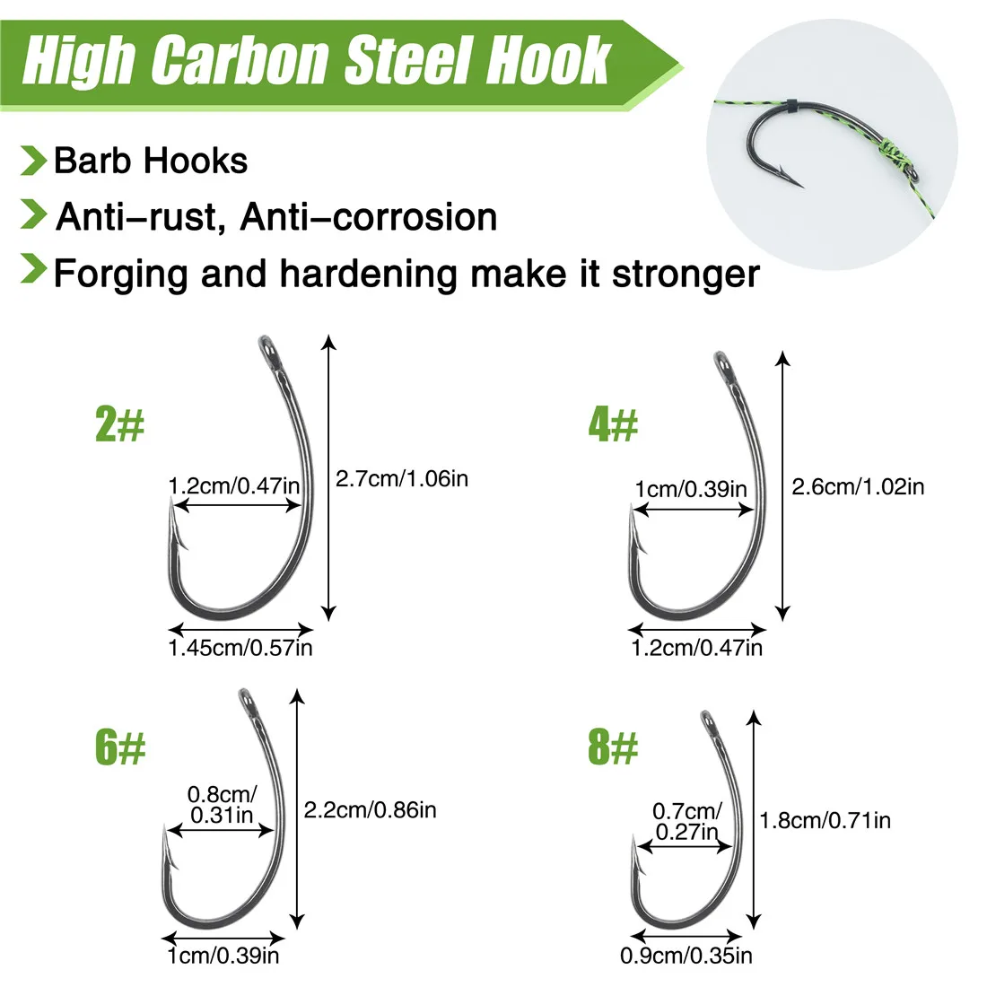 1.Los aparejos para el cabello con anzuelos de carpa preatados brindan la opción de reducir sustancialmente los tiempos de instalación del aparejo, dejando más tiempo para la pesca real.