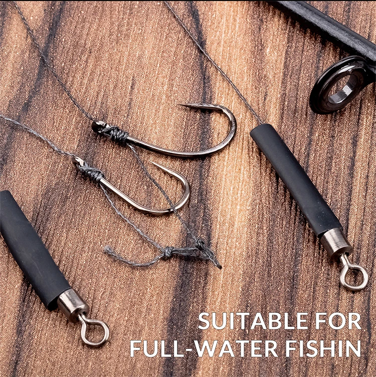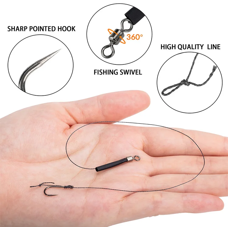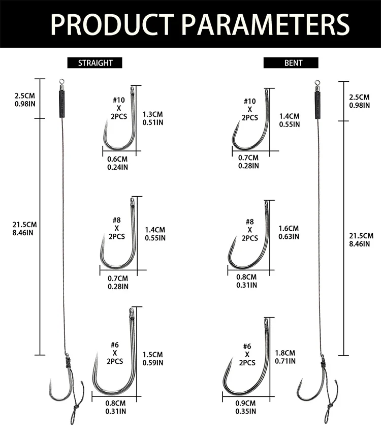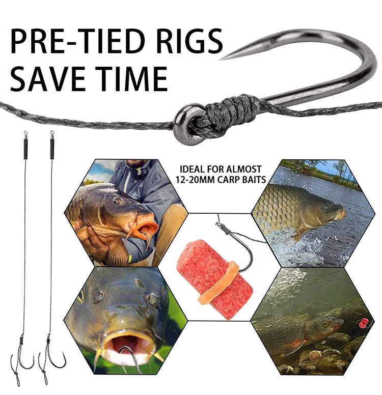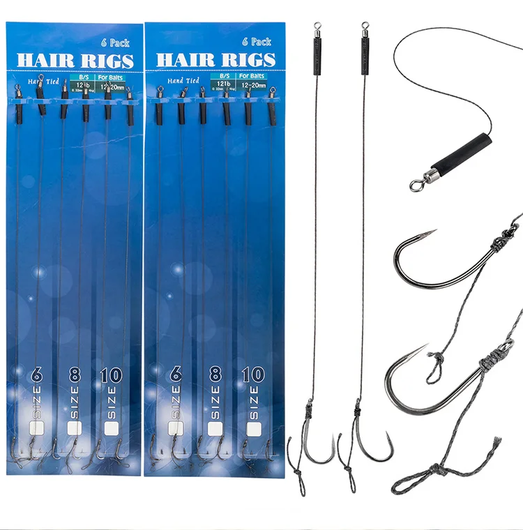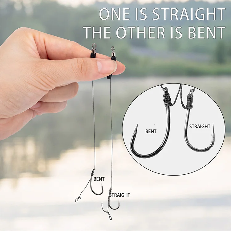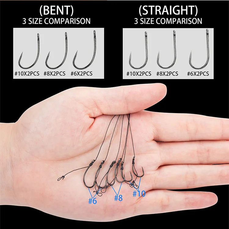 12 Uds. De aparejos alimentadores de método de pesca de carpa # 6 # 8 # 10 ganchos de carpa curvados rectos, línea de hilo trenzado sin ganchos de púas para crucian