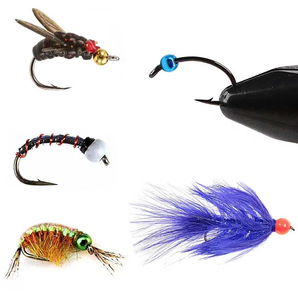 12 Uds. Cuentas de latón multicolores cabeza de cuentas de ninfa Stonefly Streamer Jig accesorios de pesca paquete de materiales para atar moscas
