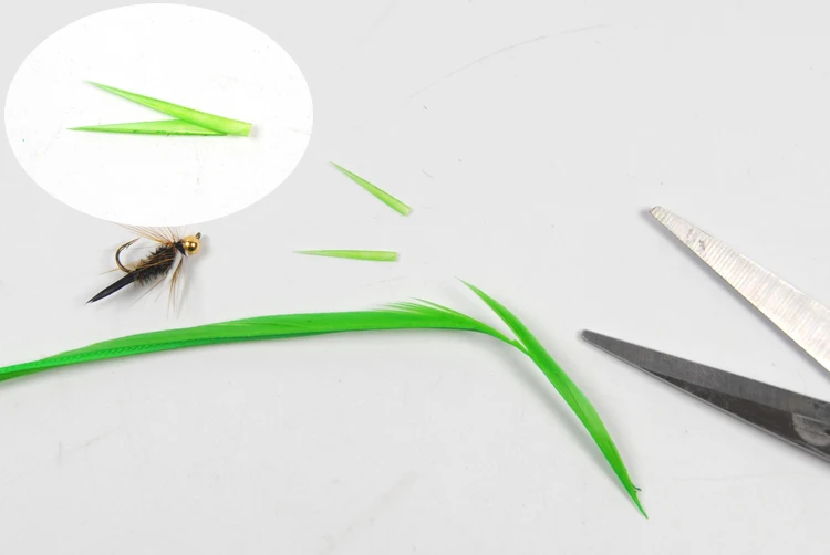 Aplicación: ala de ninfa, cola, cheque, material de la caja del ala.