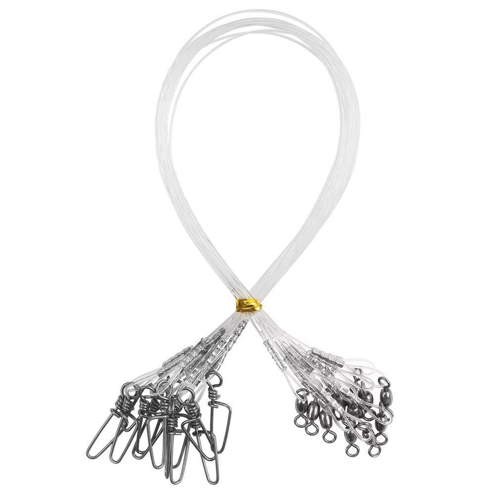 1.El hilo líder de pesca de fluorocarbono es resistente y más duradero, el alambre de pesca transparente a prueba de dientes es invisible bajo el agua.El alambre de pesca de nailon es más flexible que el alambre de acero inoxidable, tiene buena resistencia y no es fácil de doblar o romper.