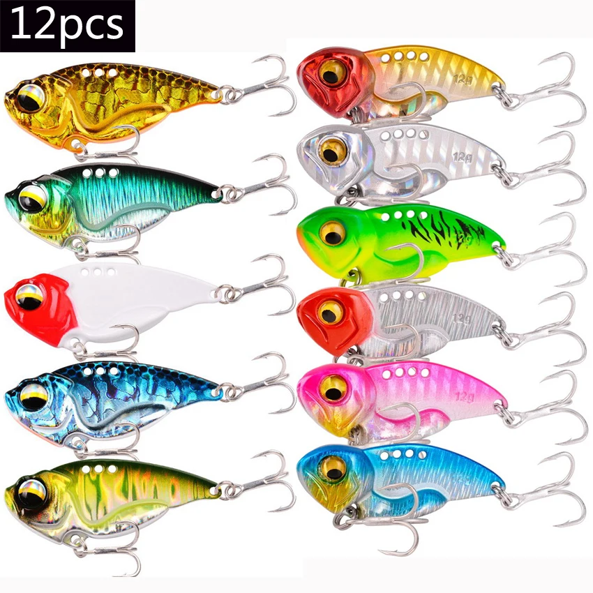12 Uds Metal VIB 5 7 10 12 14g señuelo de pesca cuchara vibratoria Spinner Crankbait Bass cebo duro Artificial cigarra aparejos de pesca