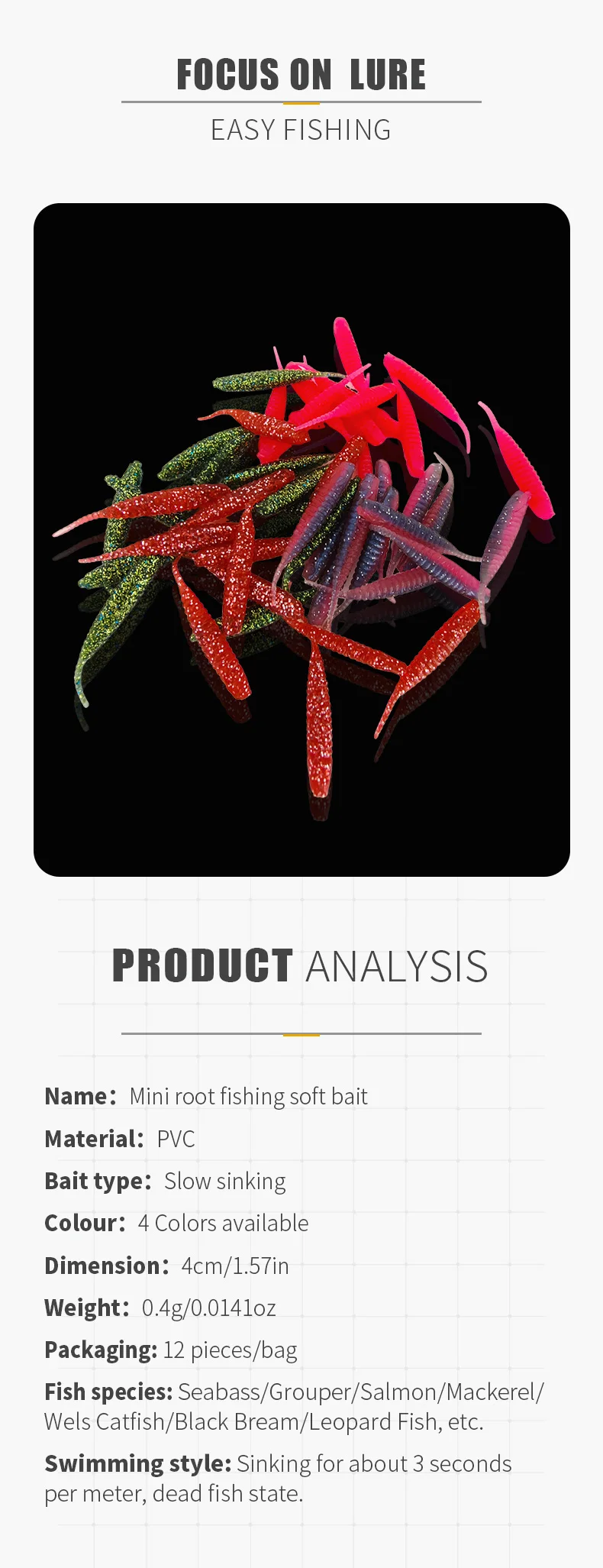 12 Uds. Señuelos de pesca blandos Ajing 4cm0,4g Mini Swimbait de plástico Rockfishing Stream River Sea depredadores más pequeños aparejos de tiro de gota