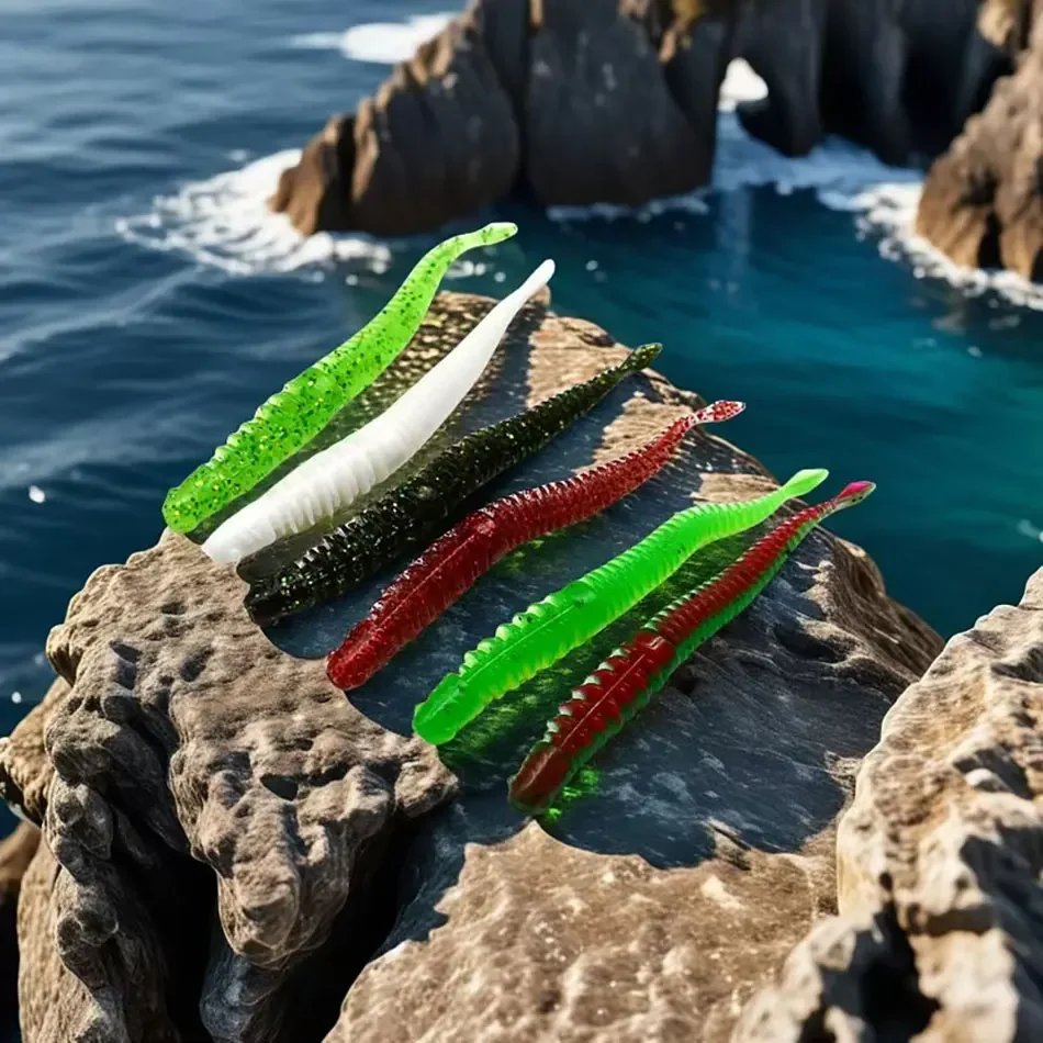12 Uds. Swimbaits blandos 8cm cola de aguja TPR señuelo Artificial gusano para aparejos de pesca de lubina plantilla de hielo lombriz de tierra para agua dulce y agua salada