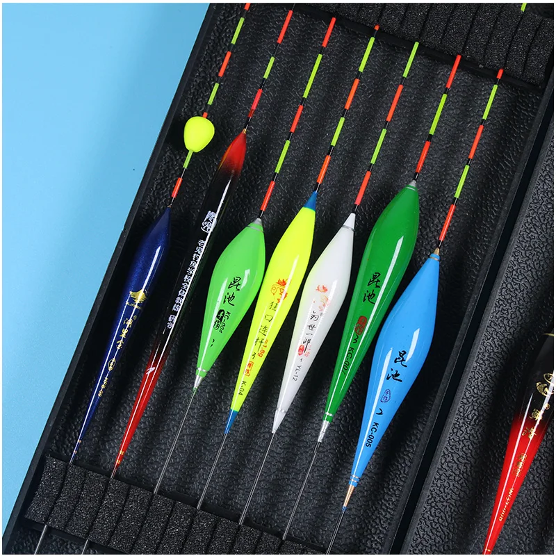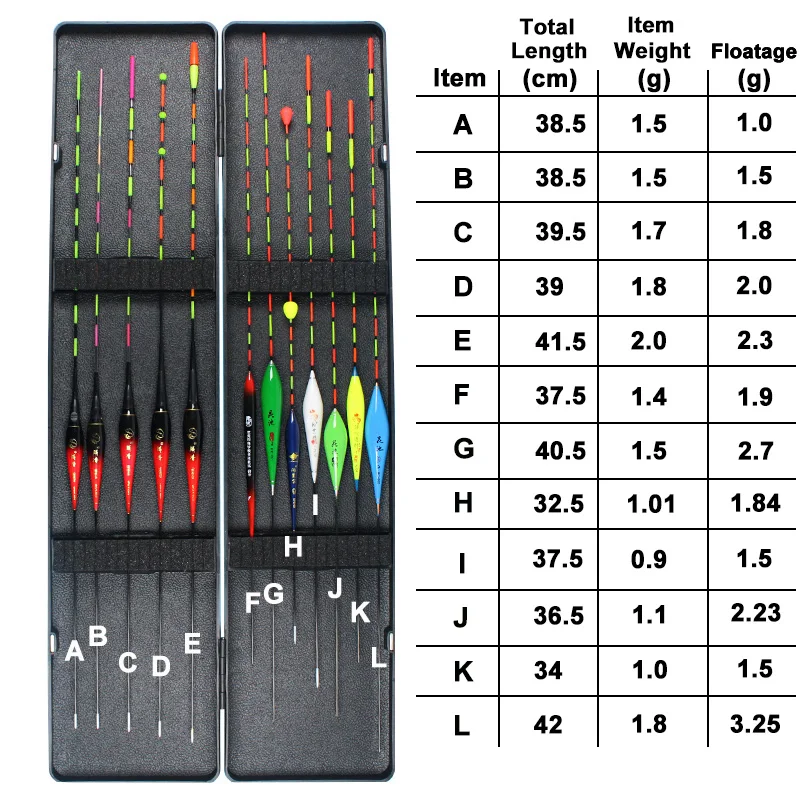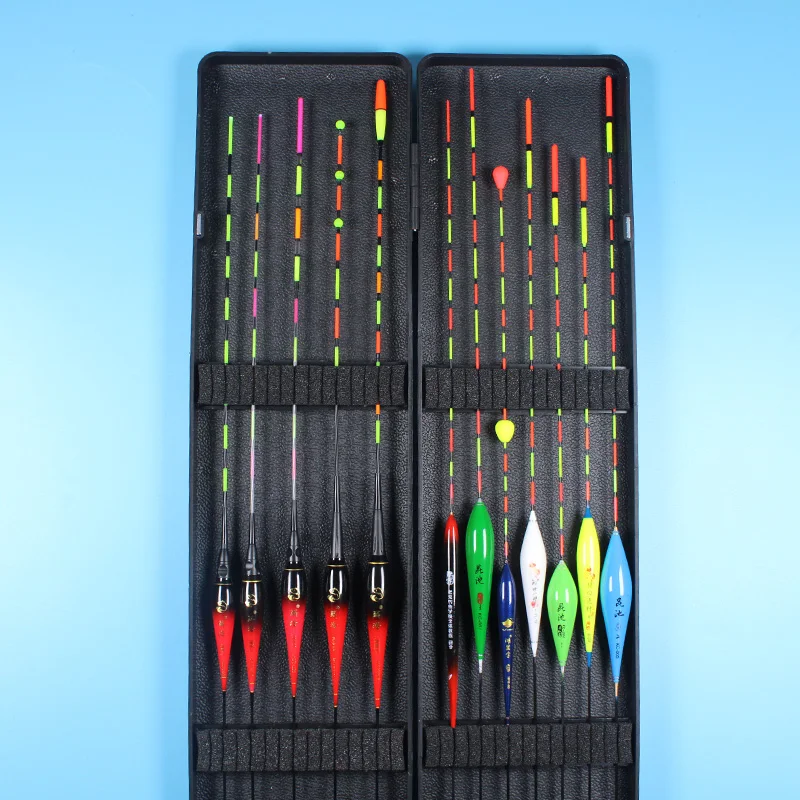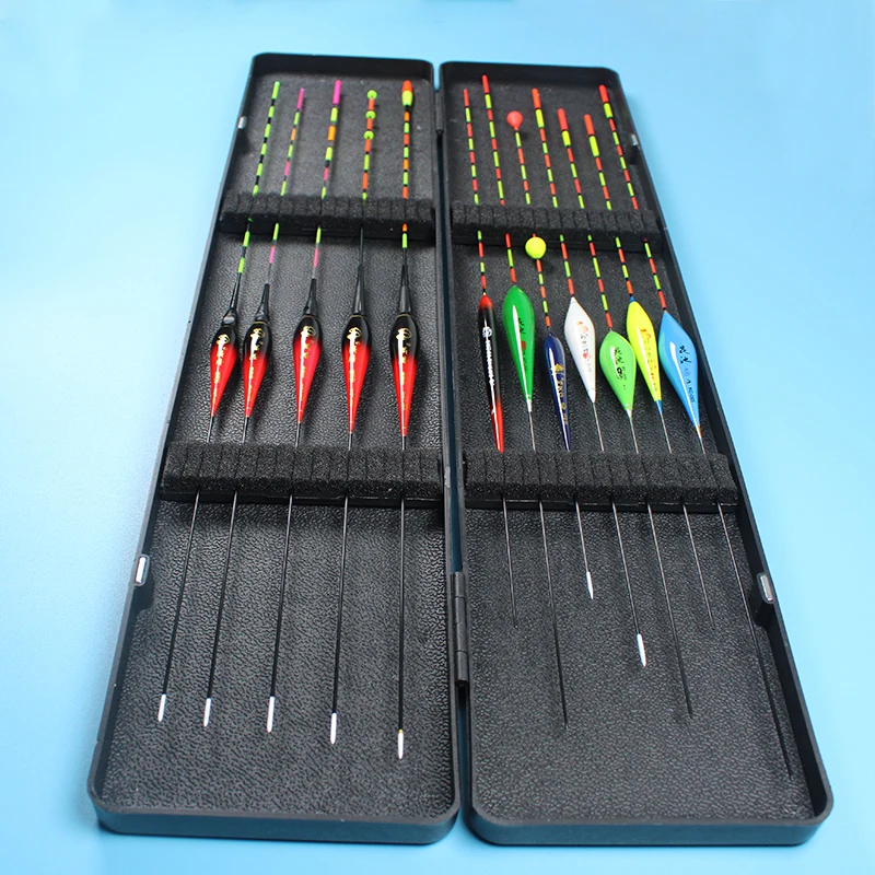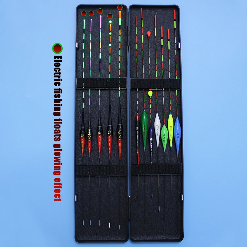 12 unids/lote (caja incluida) flotadores de pesca (5 flotadores eléctricos + 7 flotadores no eléctricos) bobbers de gravedad inteligentes caja ABS