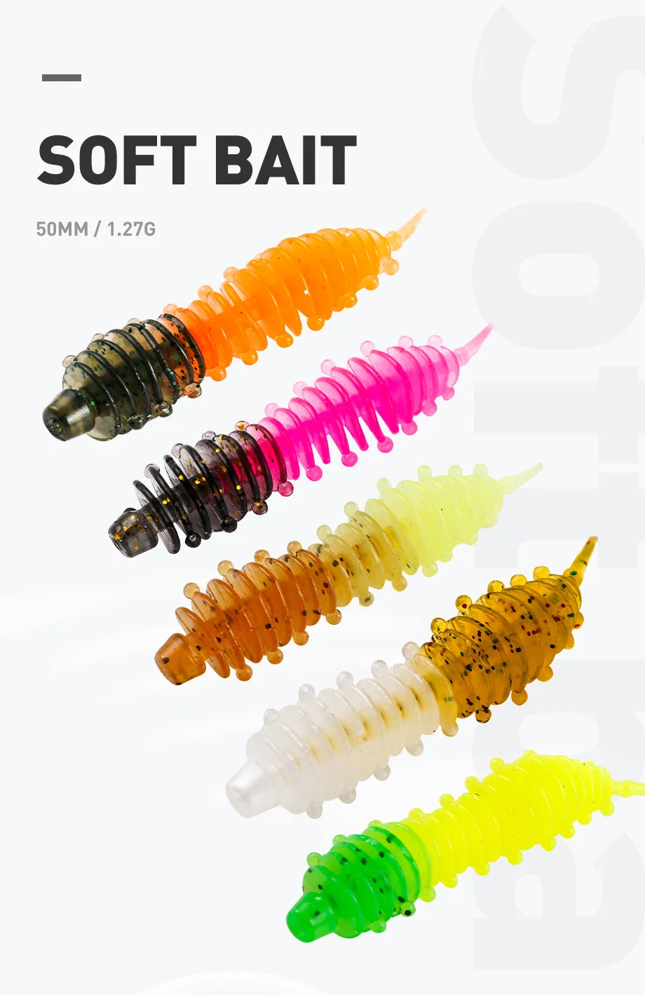 12 unids/lote supercontinente cebo de gusano cebo suave Tanta 50mm1.3g Señuelos de Pesca Pesca de carpa señuelo de lubina Isca artificial PVA