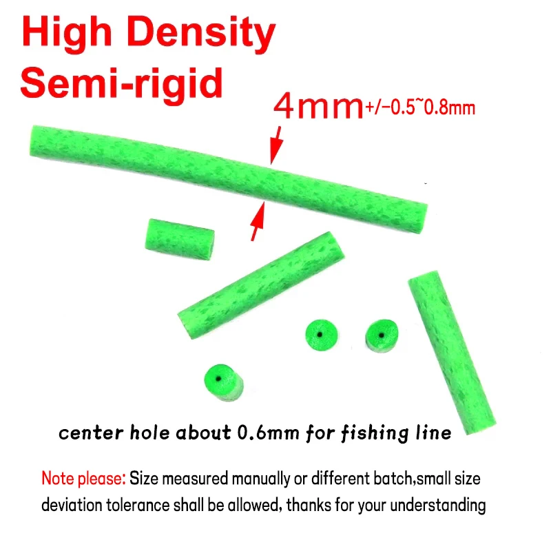 12 unids/pack de espuma cilíndrica de alta densidad de 4mm con orificio central para hacer flotadores de pesca, aparejos de atado de moscas, bricolaje, etc.