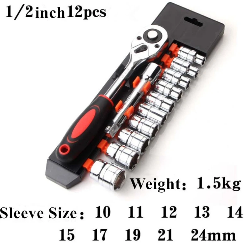 12 unids/set 1/4 pulgadas 3/8 pulgadas 1/2 pulgadas juego de llaves de tubo de trinquete juego de enchufes de accionamiento llave de varilla de extensión herramienta manual de reparación de motocicletas de coche