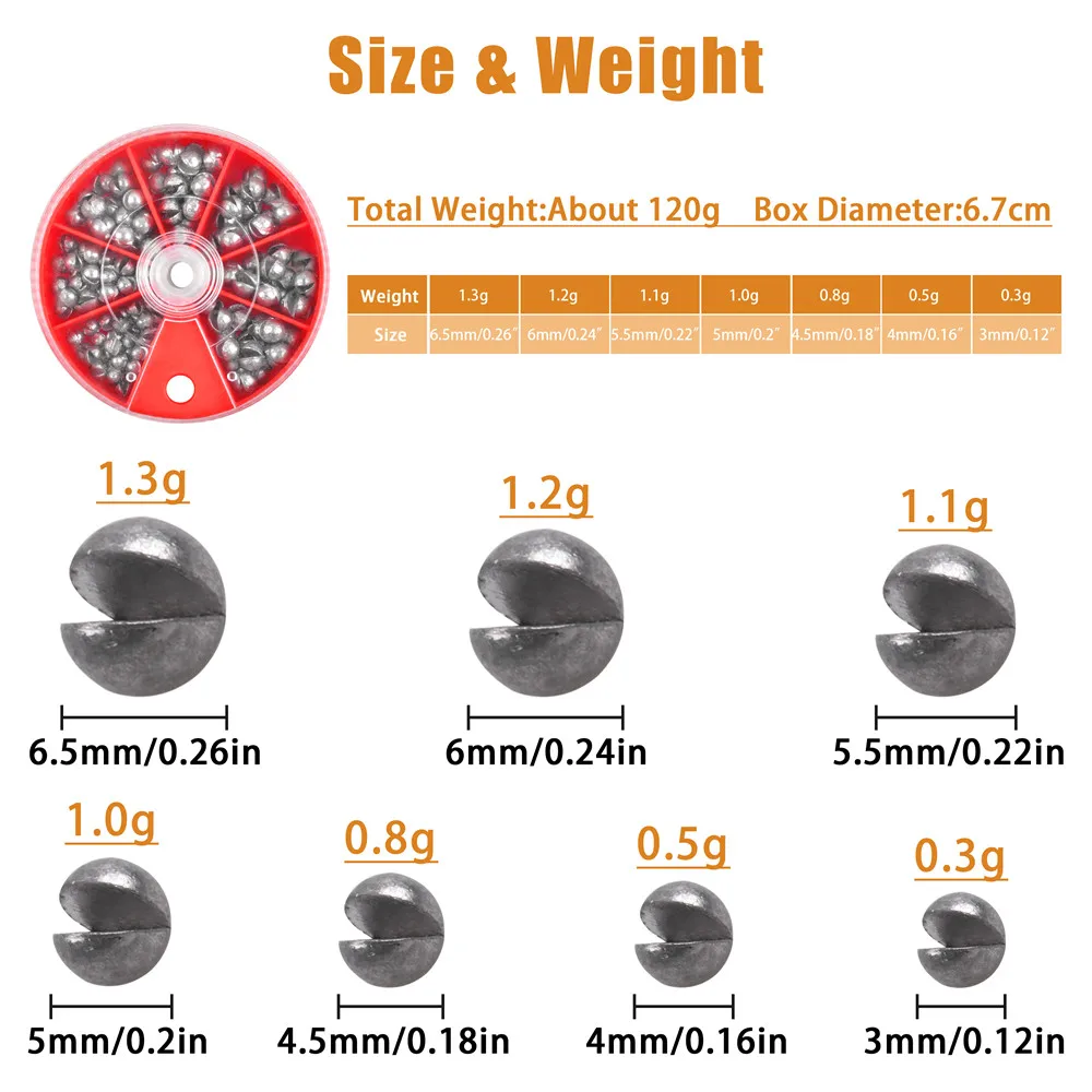 Pesos de pesca redondos divididos, 120 gramos/caja, plomos de pesca extraíbles, plantilla de pesca, equipo de accesorios