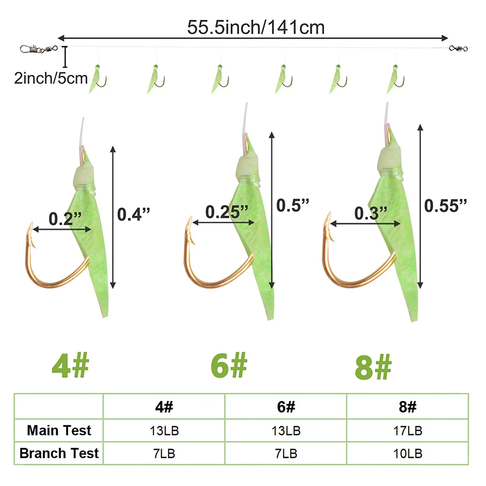 120 Uds=20 paquetes de aparejos luminosos de cebo vivo para pesca, hilo, anzuelo de pesca, cuentas fluorescentes, mar, agua salada, anguilo, caballa, aparejos de señuelo, piel de pez real, aparejos marinos con ganchos