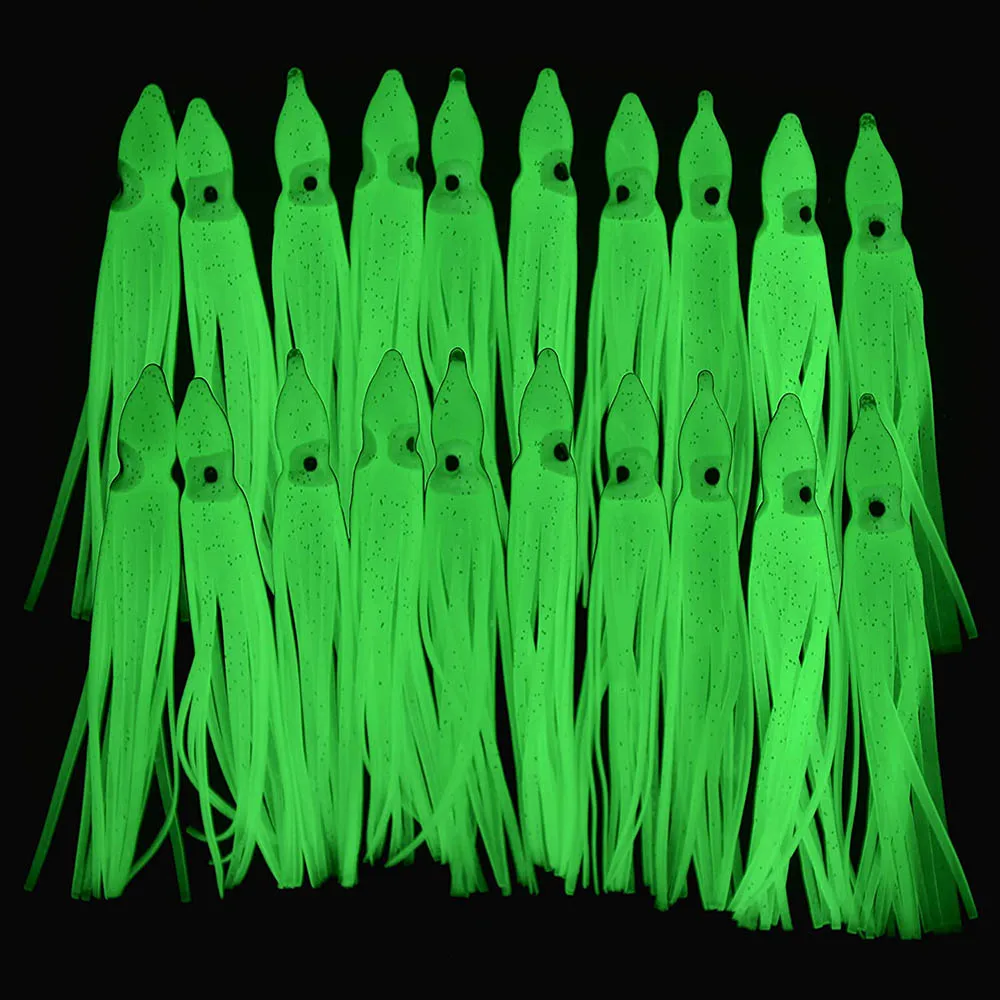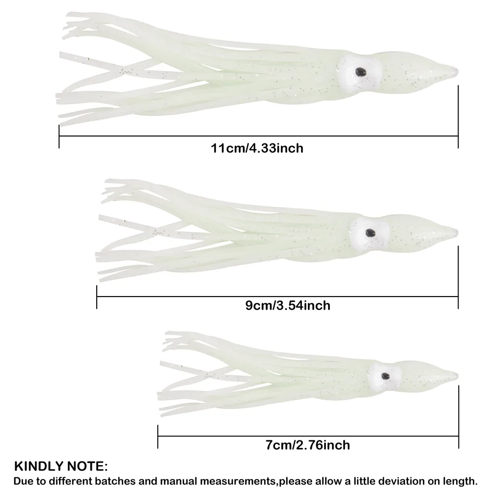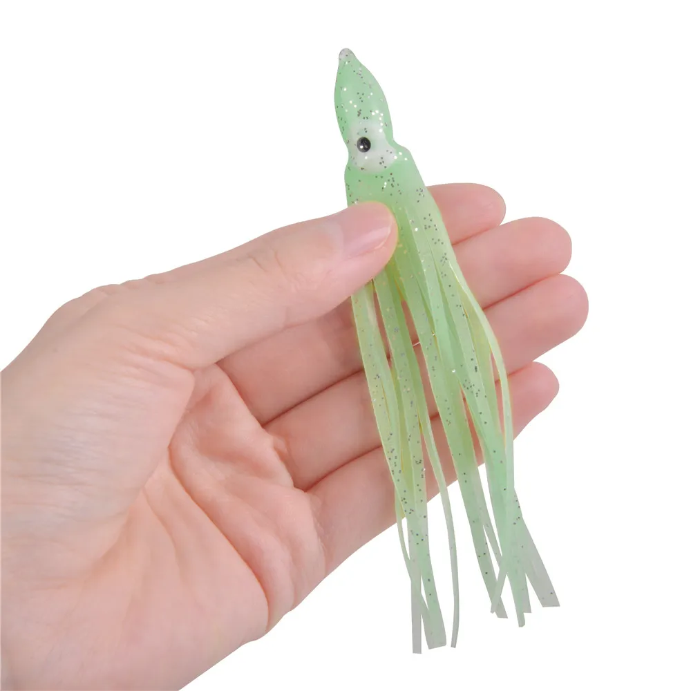 120 Uds. Faldas de calamar fluorescentes cebo luminoso señuelo de pulpo cebo suave agua salada pesca de lanzamiento de corrico señuelos de pesca 7cm 9cm 11cm