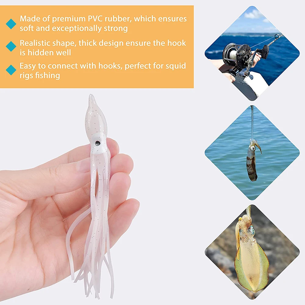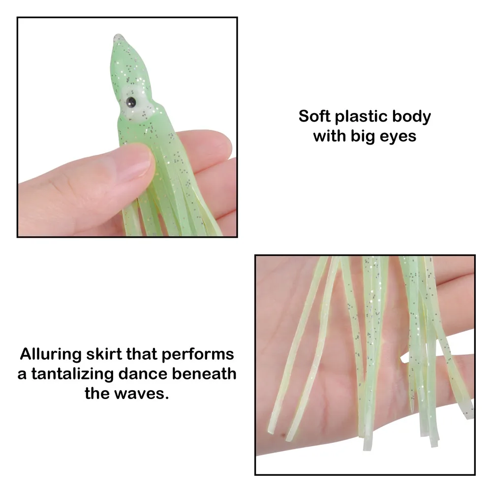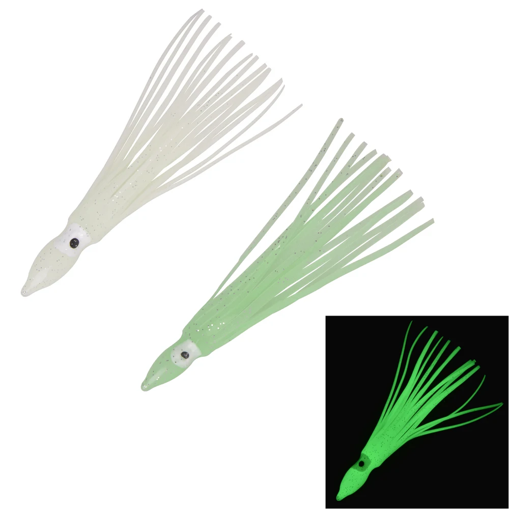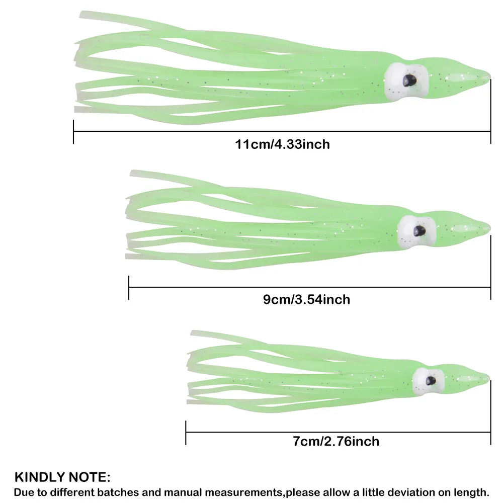 120 Uds. Faldas de calamar fluorescentes cebo luminoso señuelo de pulpo cebo suave agua salada pesca de lanzamiento de corrico señuelos de pesca 7cm 9cm 11cm