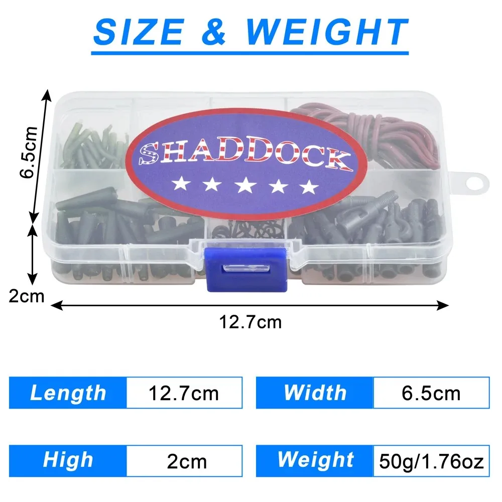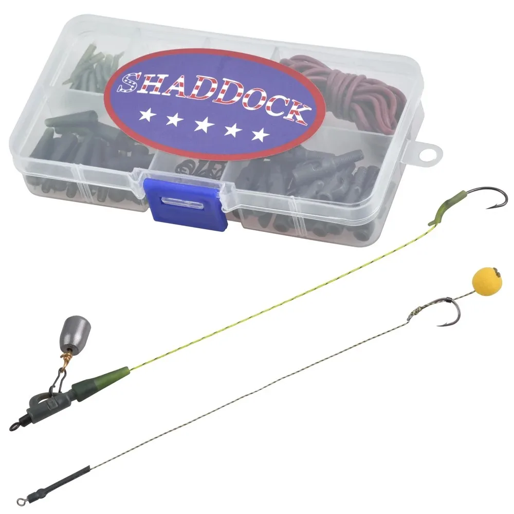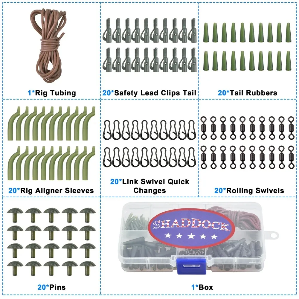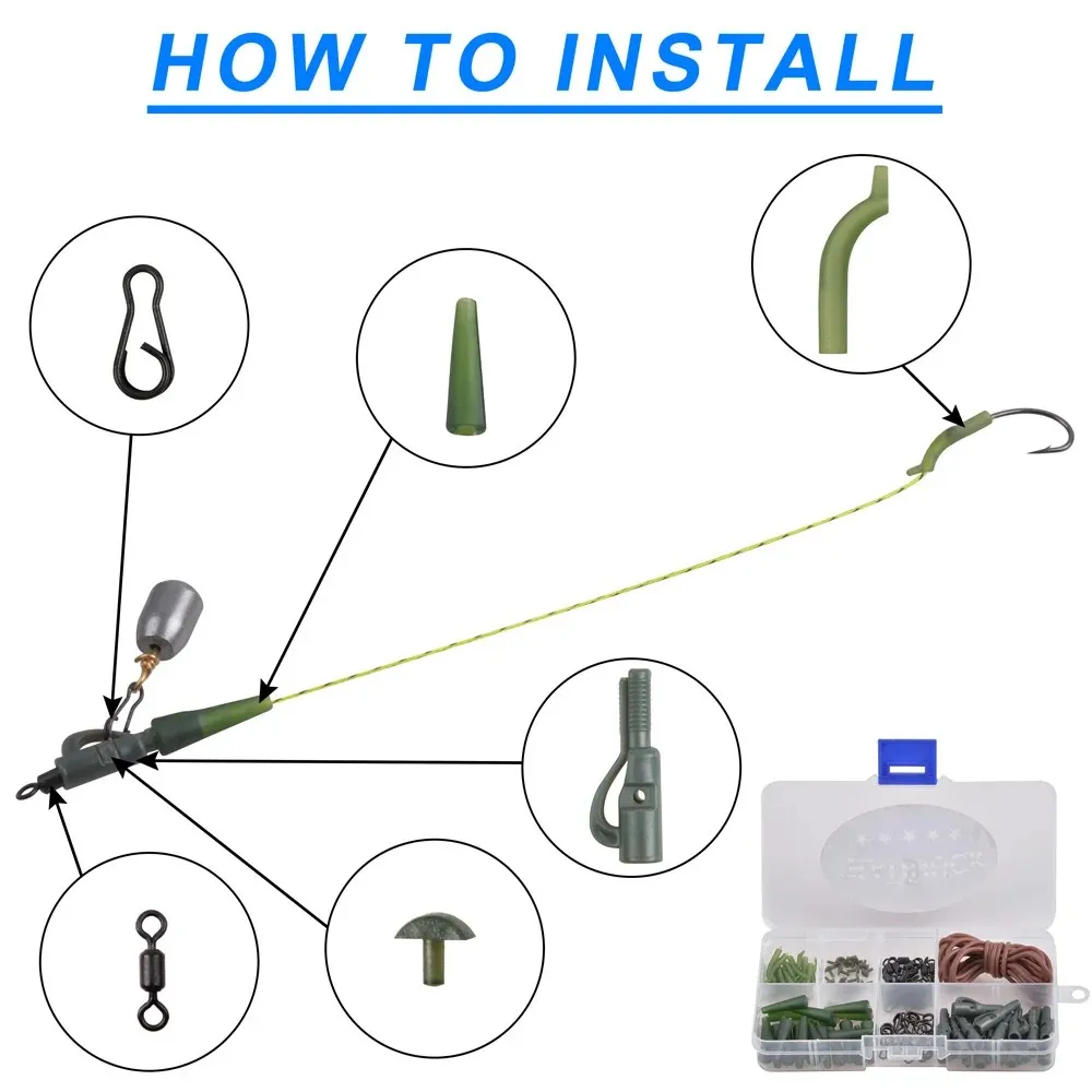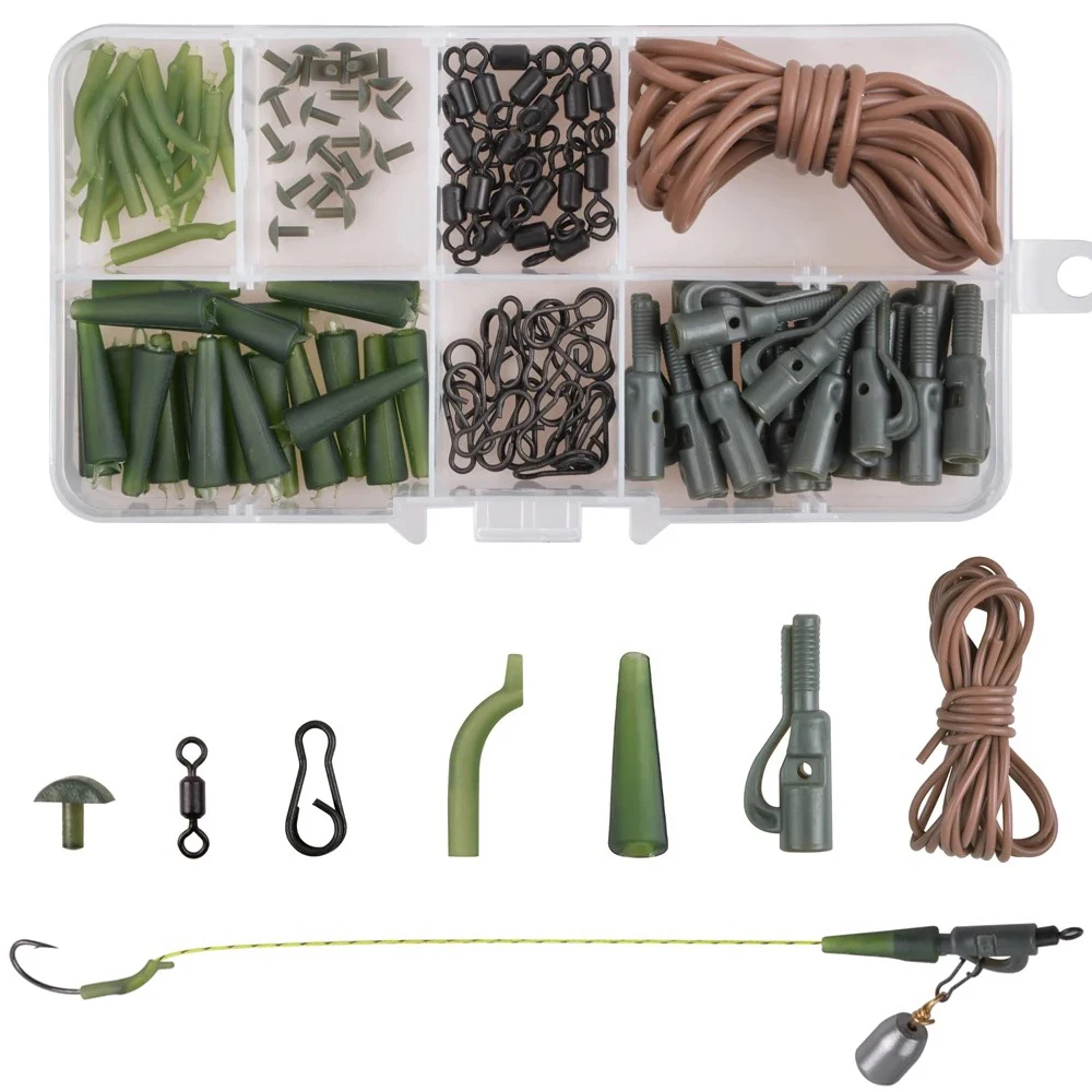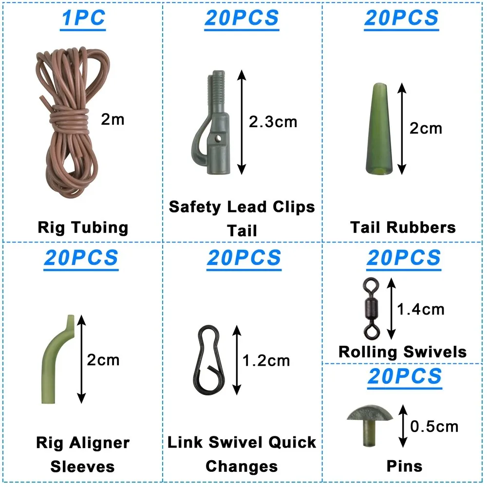 1.Una variedad de accesorios necesarios de bricolaje para pesca de carpas se colocan en una caja con compartimento transparente para facilitar su transporte y acceso.