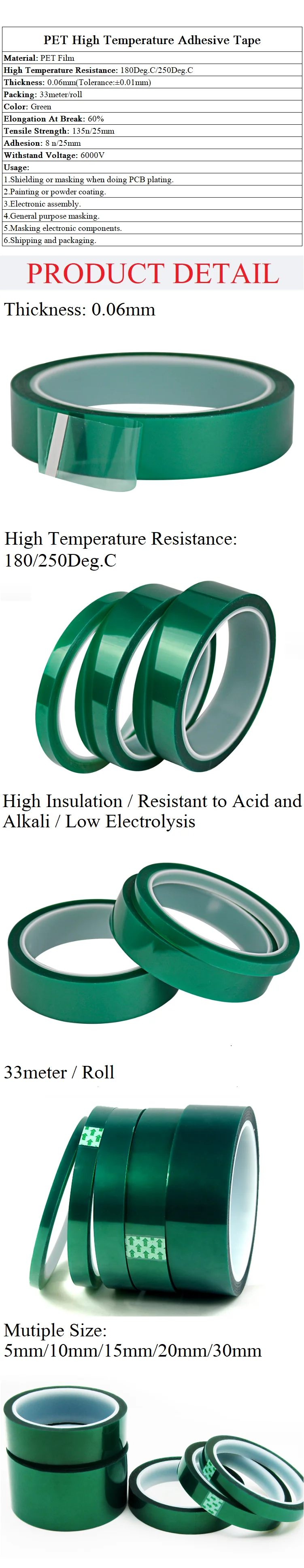 13/5 Uds cinta de película PET 3mm ~ 100mm verde alta temperatura resistente al calor PCB soldadura SMT revestimiento escudo protección de aislamiento