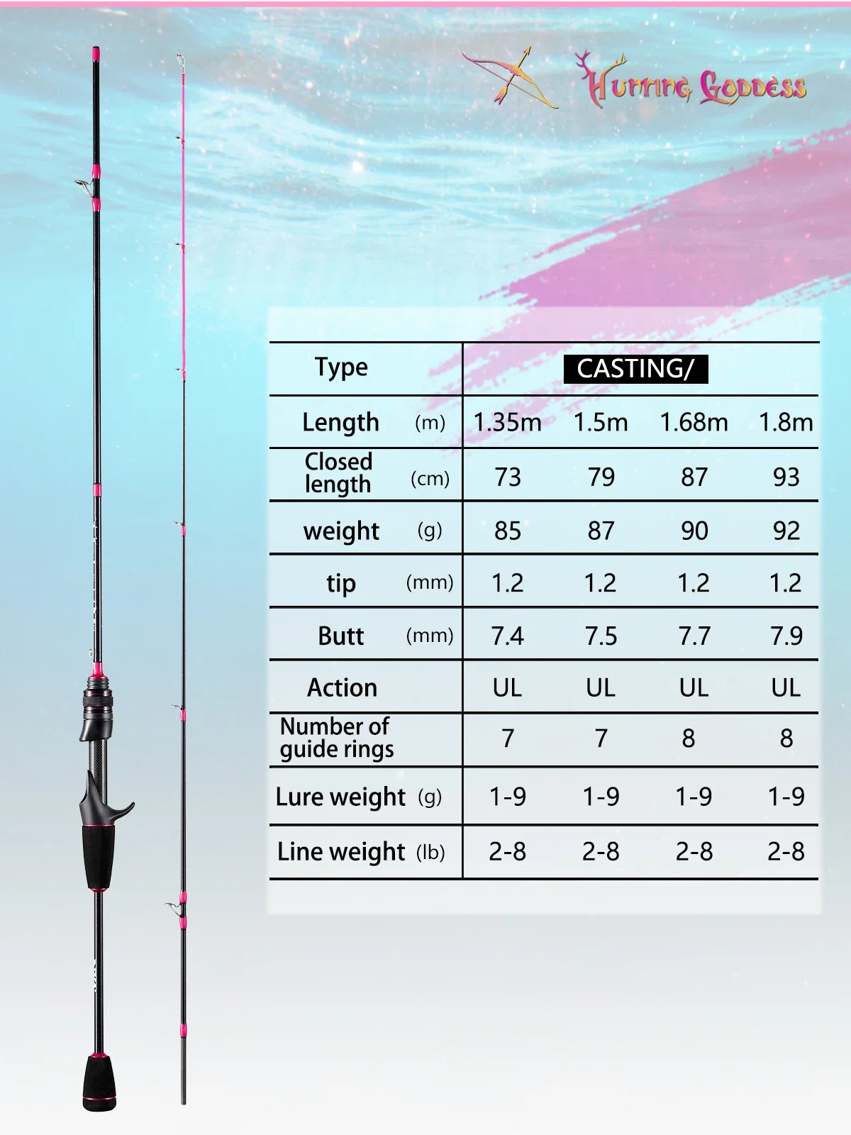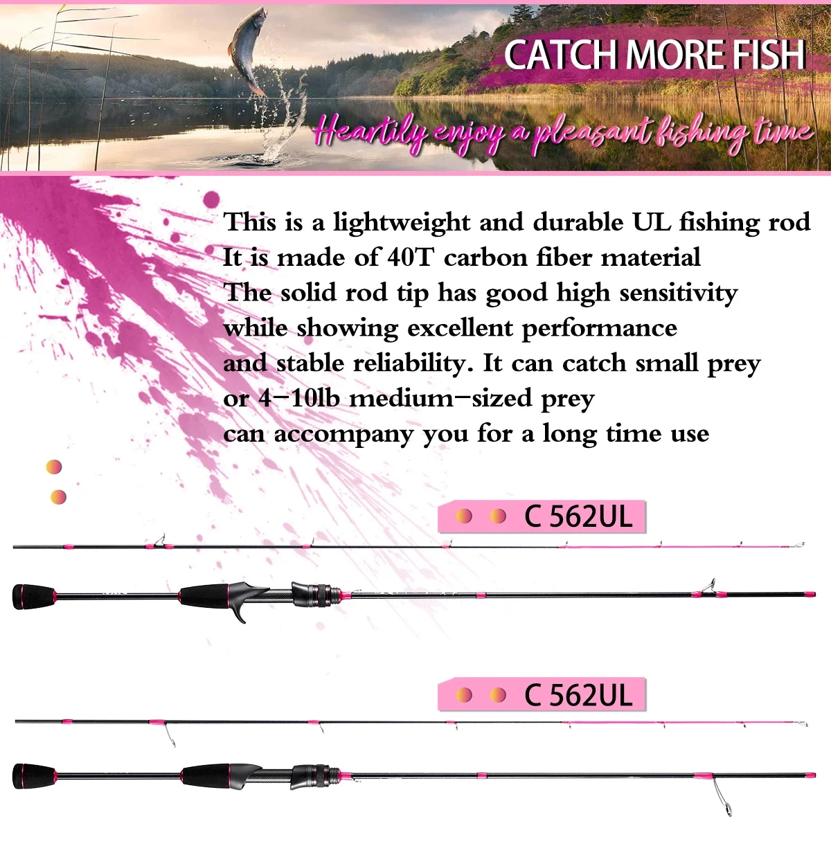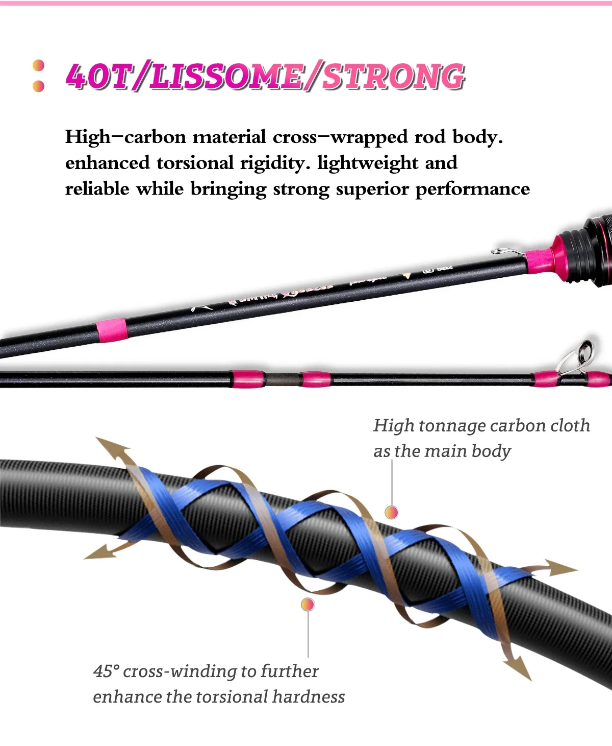 Varilla UL de punta sólida de Color rosa carbón 40T de diosa de caza