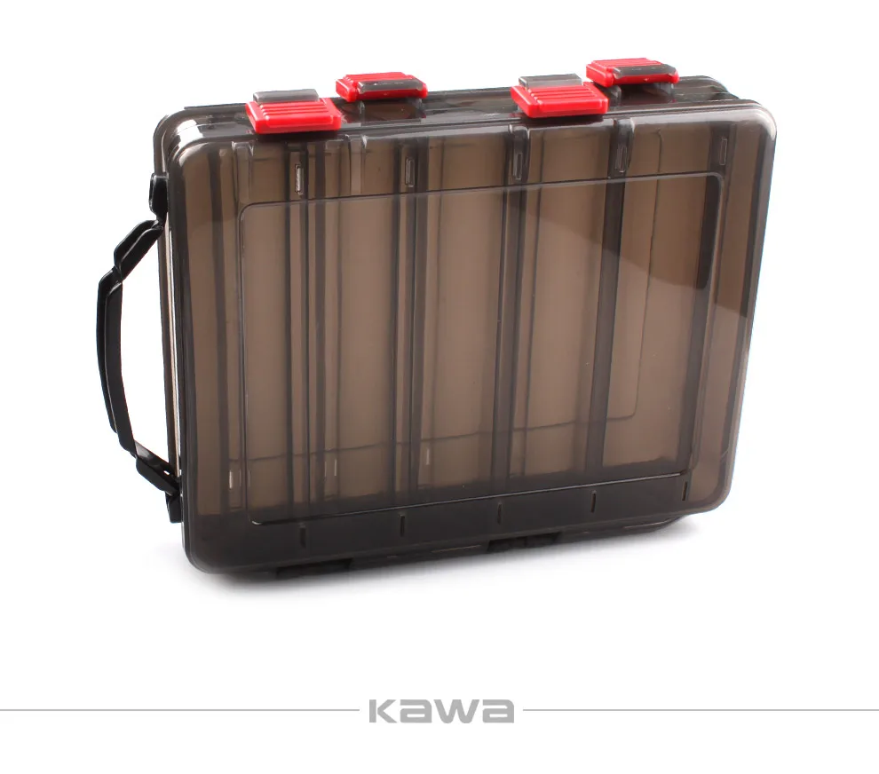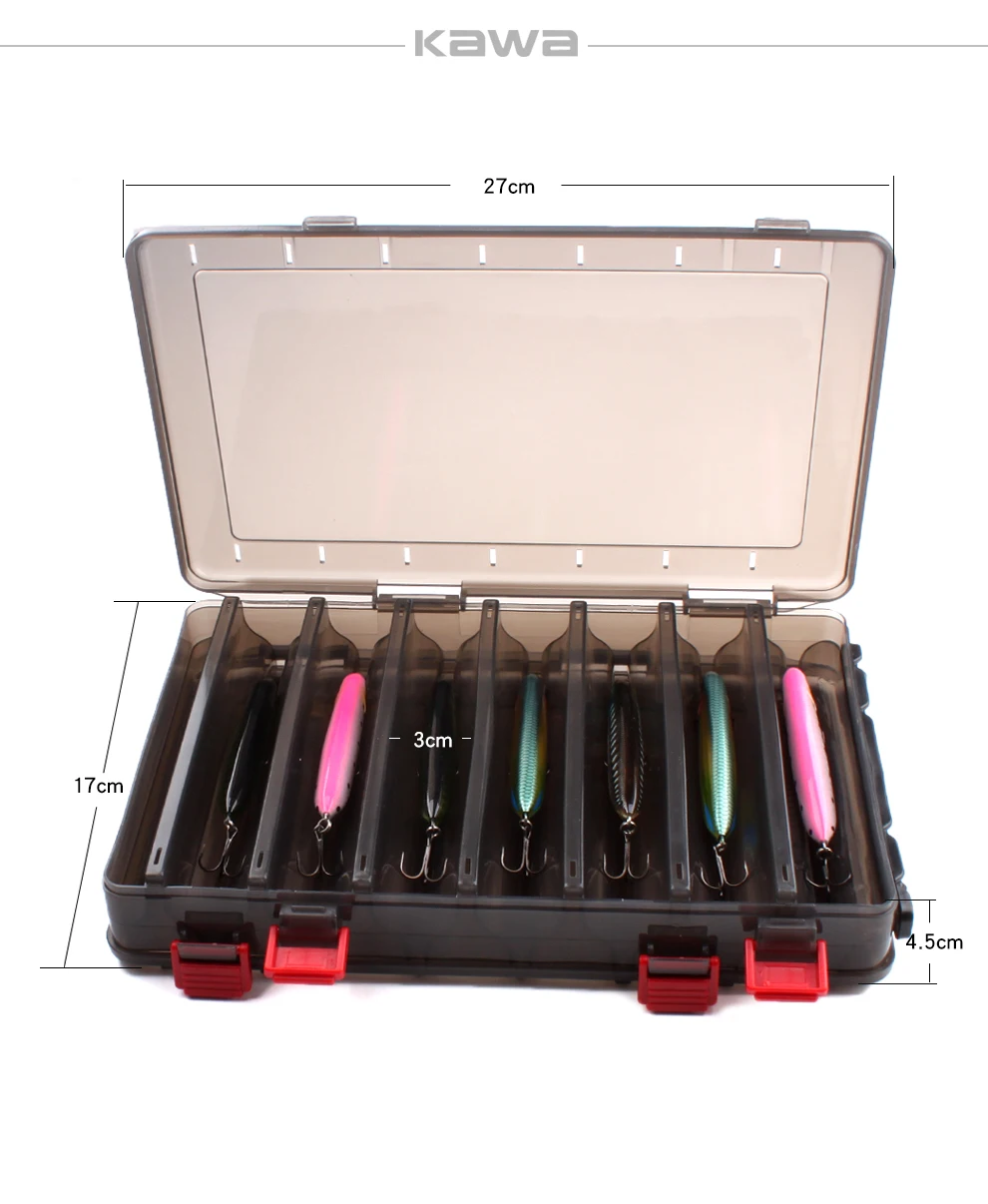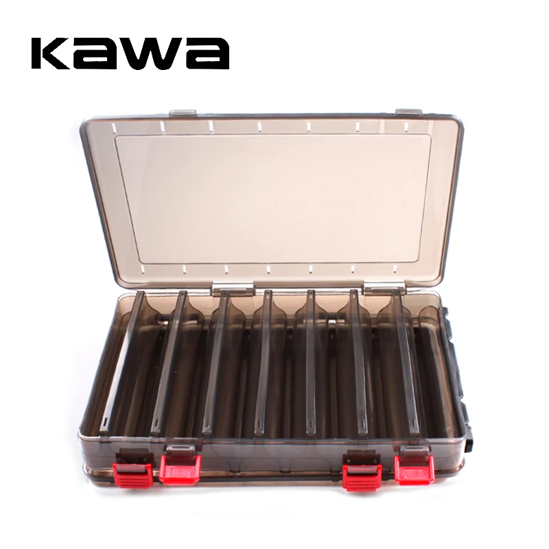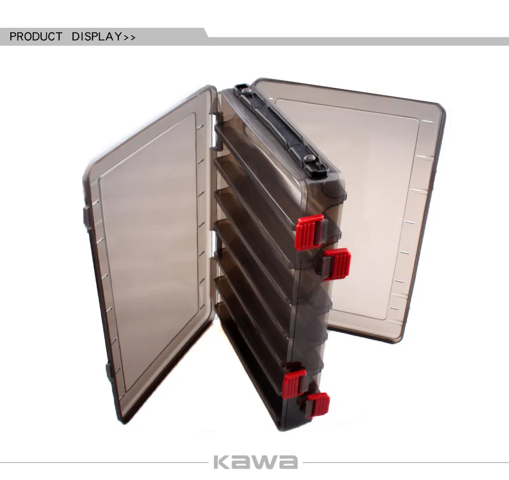 14/10 compartimentos de doble cara, caja de pesca KAWA, caja de pesca de plástico transparente visible de alta resistencia con orificio de drenaje, para accesorios de pesca, contenedor de aparejos de pesca