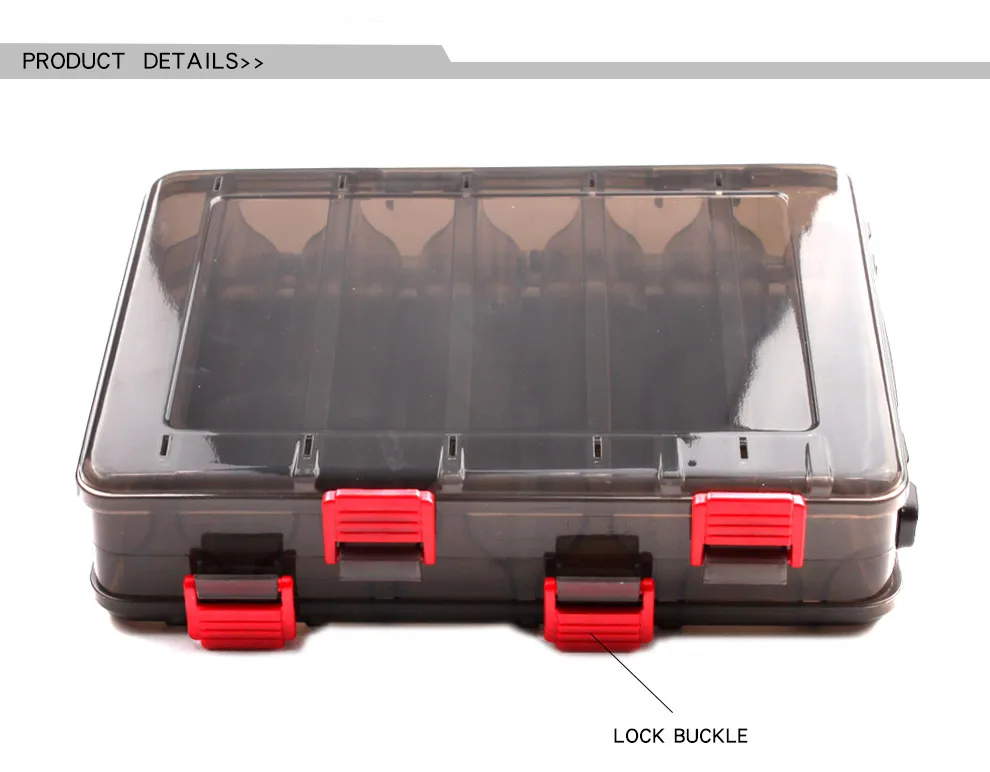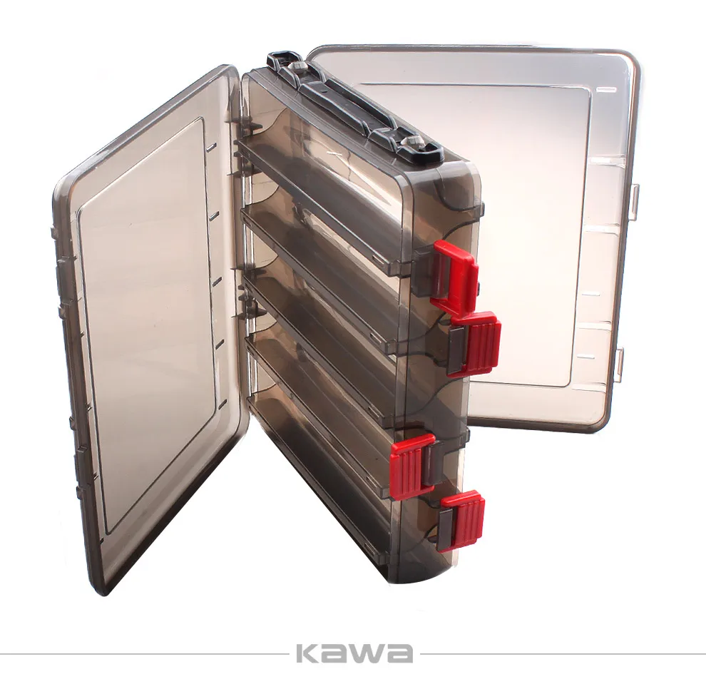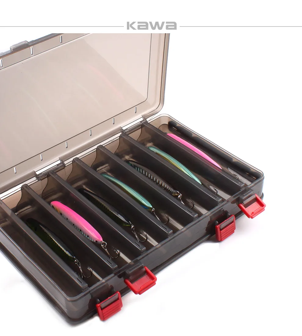 14/10 compartimentos de doble cara, caja de pesca KAWA, caja de pesca de plástico transparente visible de alta resistencia con orificio de drenaje, para accesorios de pesca, contenedor de aparejos de pesca