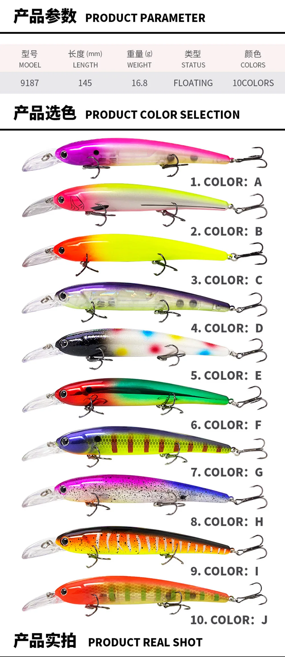 Señuelo de pesca Walleye de buceo profundo de 14,5 cm/16,8 g, Wobbler flotante, Crankbait Minnow, lubina, Lucio, cebo Bandit, aparejos de pesca de agua salada