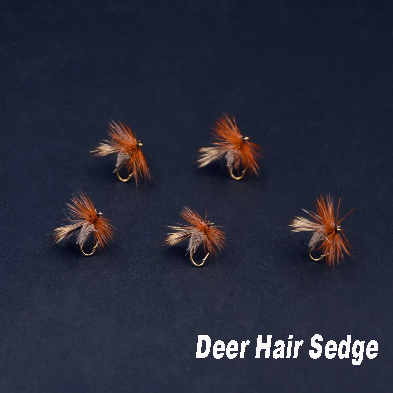 14# Estimados especiales para el pelo, moscas secas para la pesca de trucha, 5 unidades/caja, moscas, patrón de sedgo grande