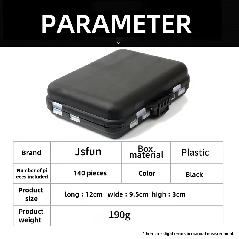 1.El juego de artículos de pesca de 140 piezas en la caja contiene todo tipo de accesorios de pesca que necesita para diferentes ocasiones de pesca.