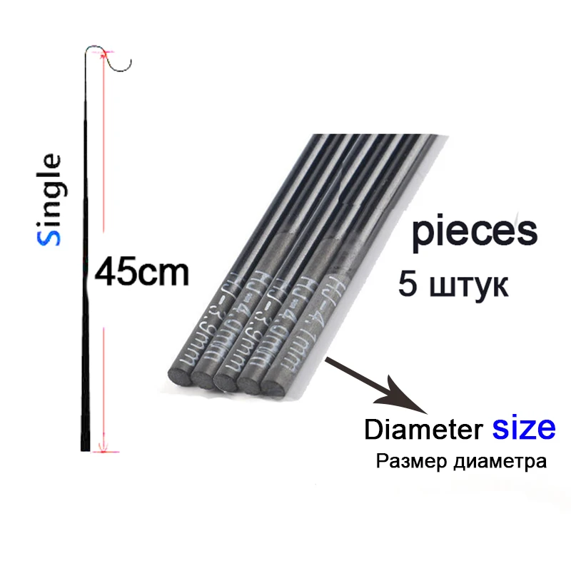 1,4mm-4,2mm 5 piezas 45cm punta de caña de pescar de repuesto 1,2 secciones caña de pescar de corriente tamaño corto completo accesorios de carbono huecos resistentes