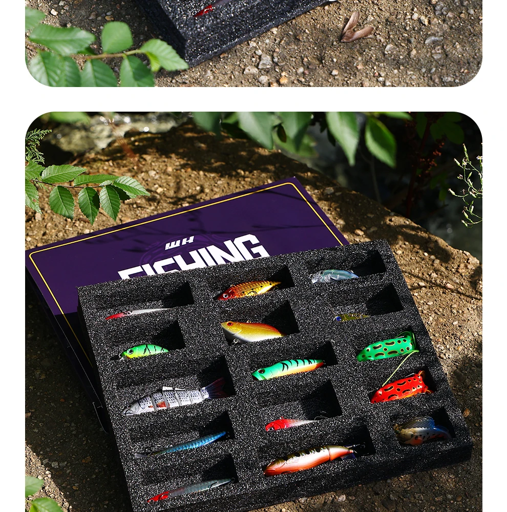 15 piezas de caja de regalo de cebo F # Juego de cebo Luya, cebo duro Vib Wave, escalada, equipo de pescado multisección