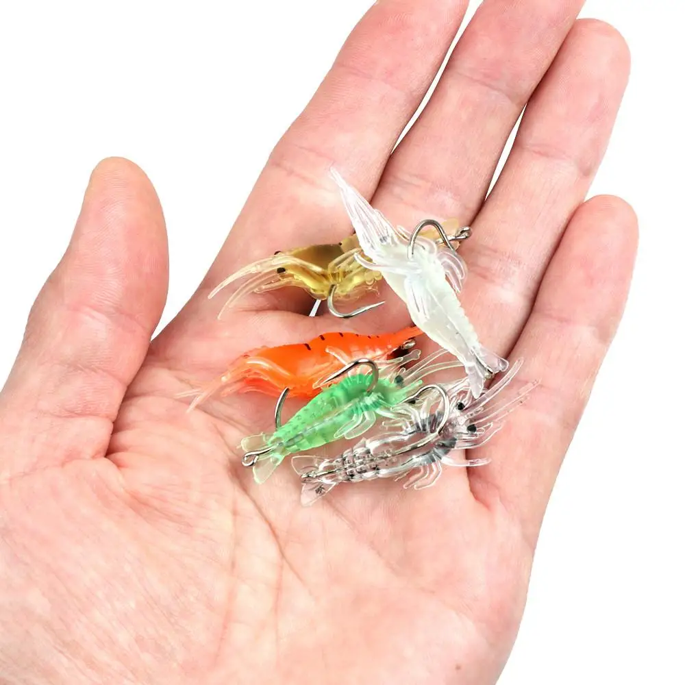 (1) El juego de cebo para señuelos de camarones suaves tiene una forma muy detallada, el diseño biomimético hace que parezca un camarón real.
