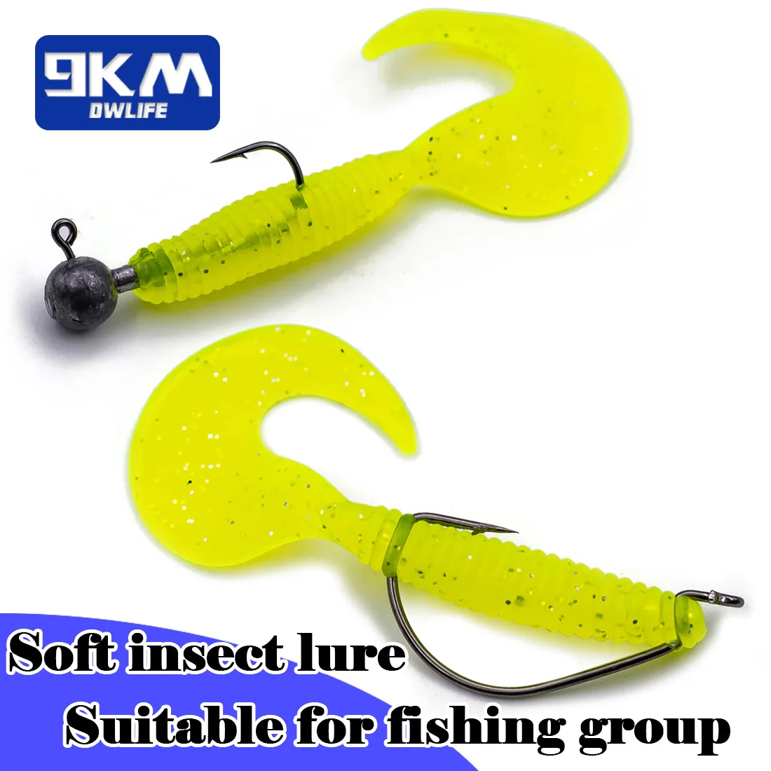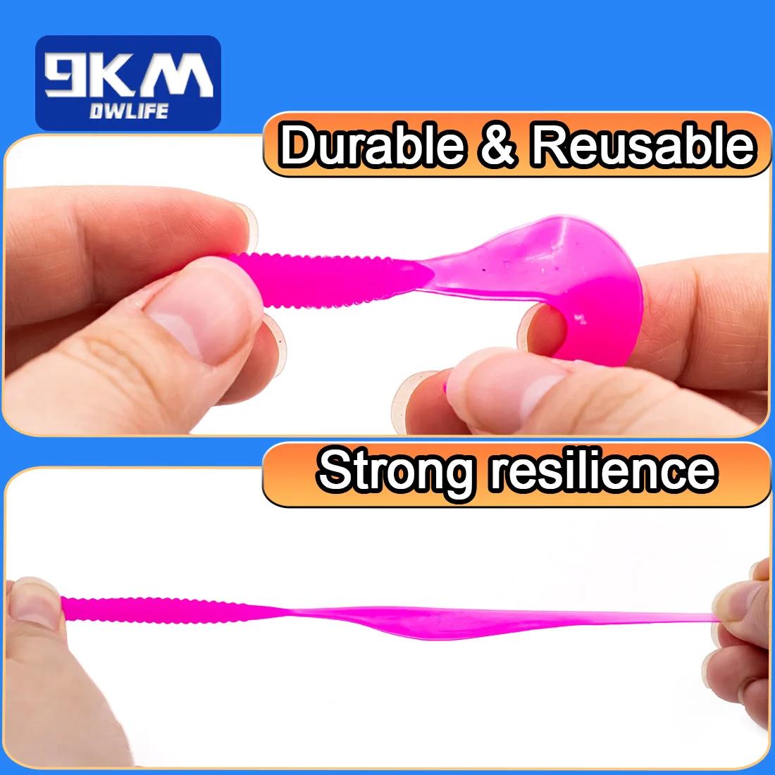 Señuelos de pesca realistas: las secciones acanaladas imitan la forma real de gusano de pesca para ayudar a ocultar los anzuelos.Cola suave y flexible con adornos brillantes para crear movimientos vívidos en el agua y hacerlos más atractivos para los peces.