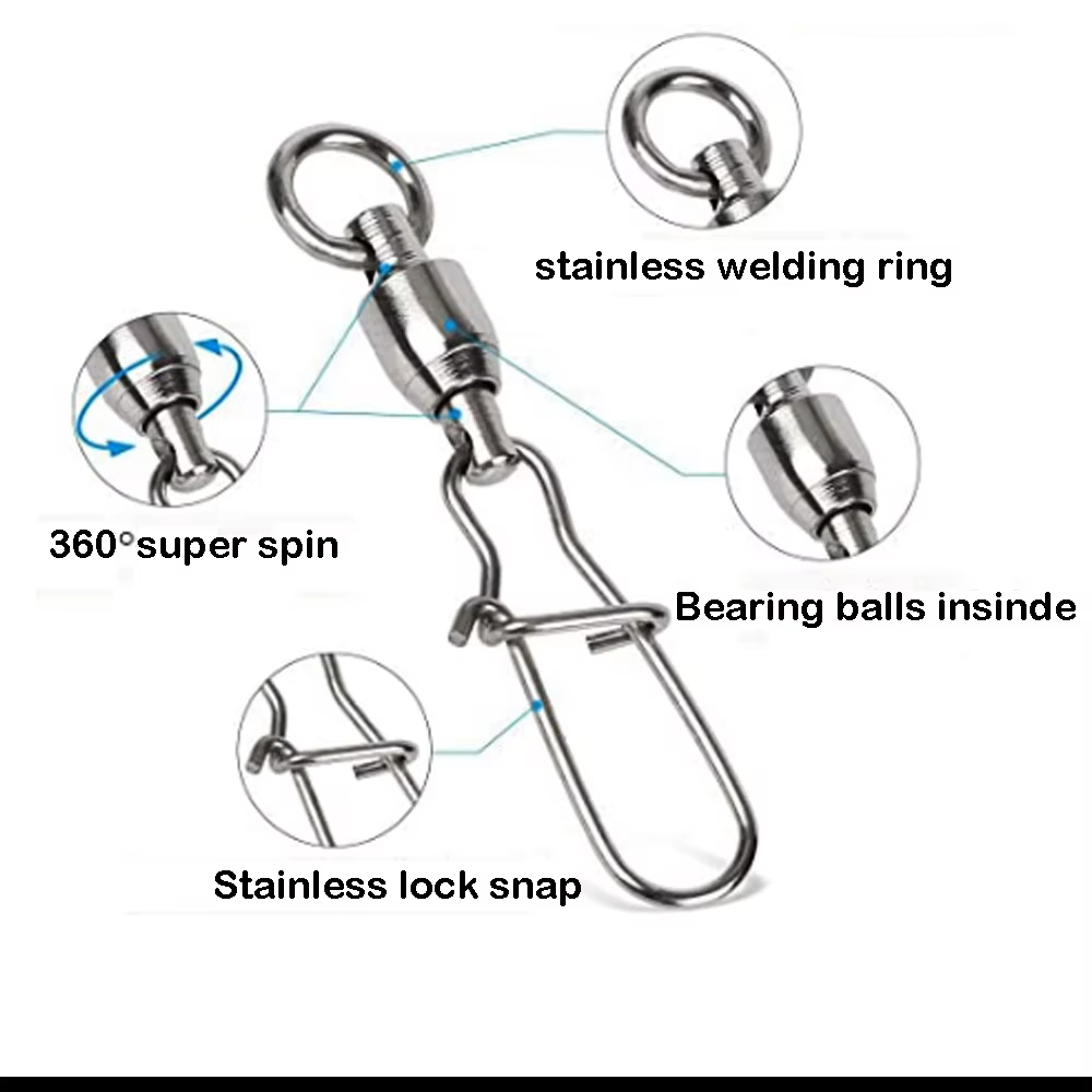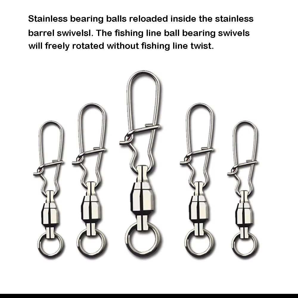 20 piezas de alta resistencia para pesca, giratorios con rodamiento de bolas, giratorios de pesca de acero inoxidable, barril resistente a la corrosión de agua salada