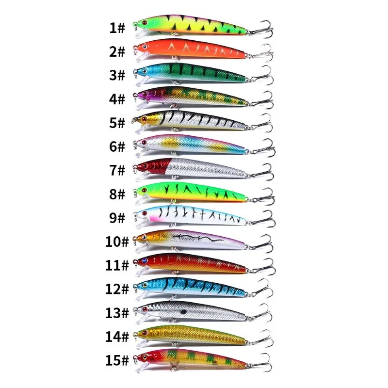 15 Uds Mino flotante señuelo de carretera microsonda de fundición larga flotante Milo cebo falso señuelo de pesca de agua dulce pesca esencial para principiantes