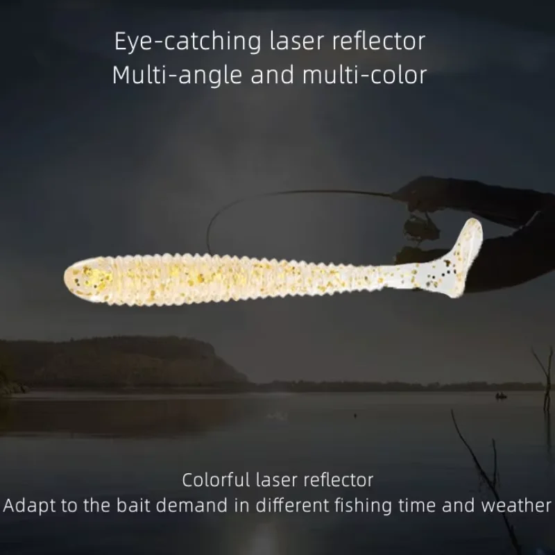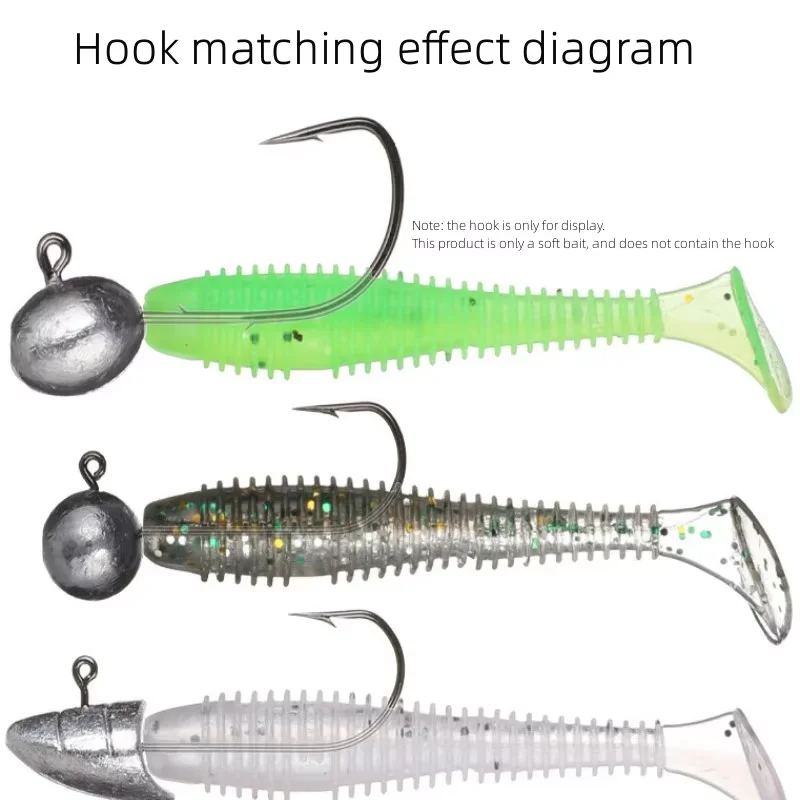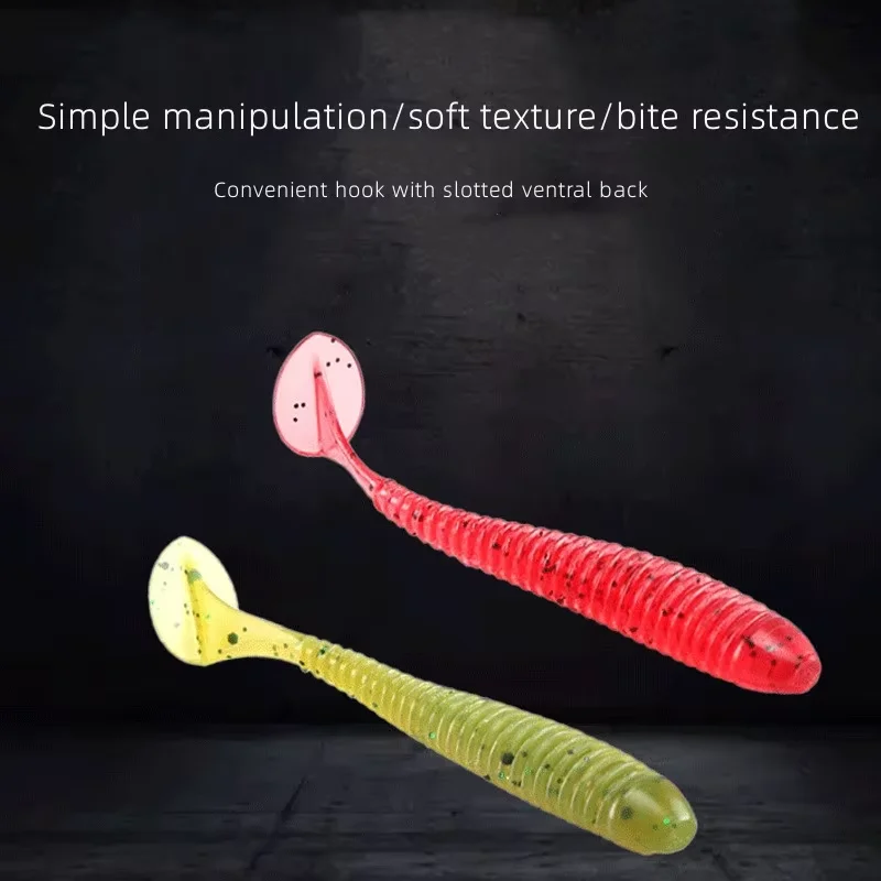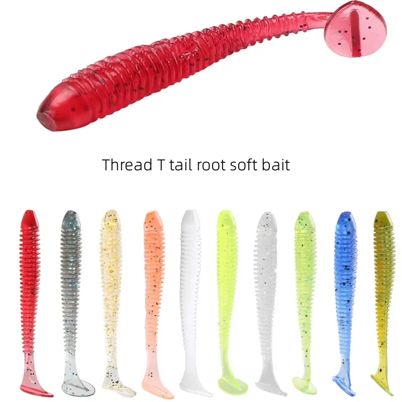 15 pieces/bag Biomimetic T-tail Colorful Spiral Pattern Plastic Worm Soft Bait 0.8g Fish Bait Herring Swinging Soft Bait
