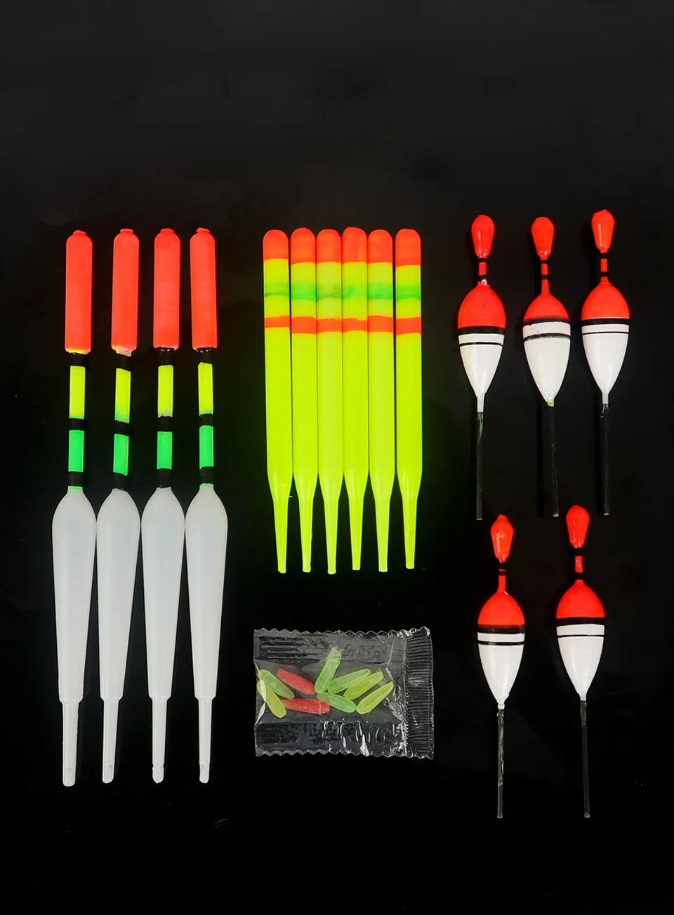 15 unids/set juego de flotador de Pesca boya Vertical profesional con barra luminosa señuelo multifunción flotador aparejos de Pesca para Pesca