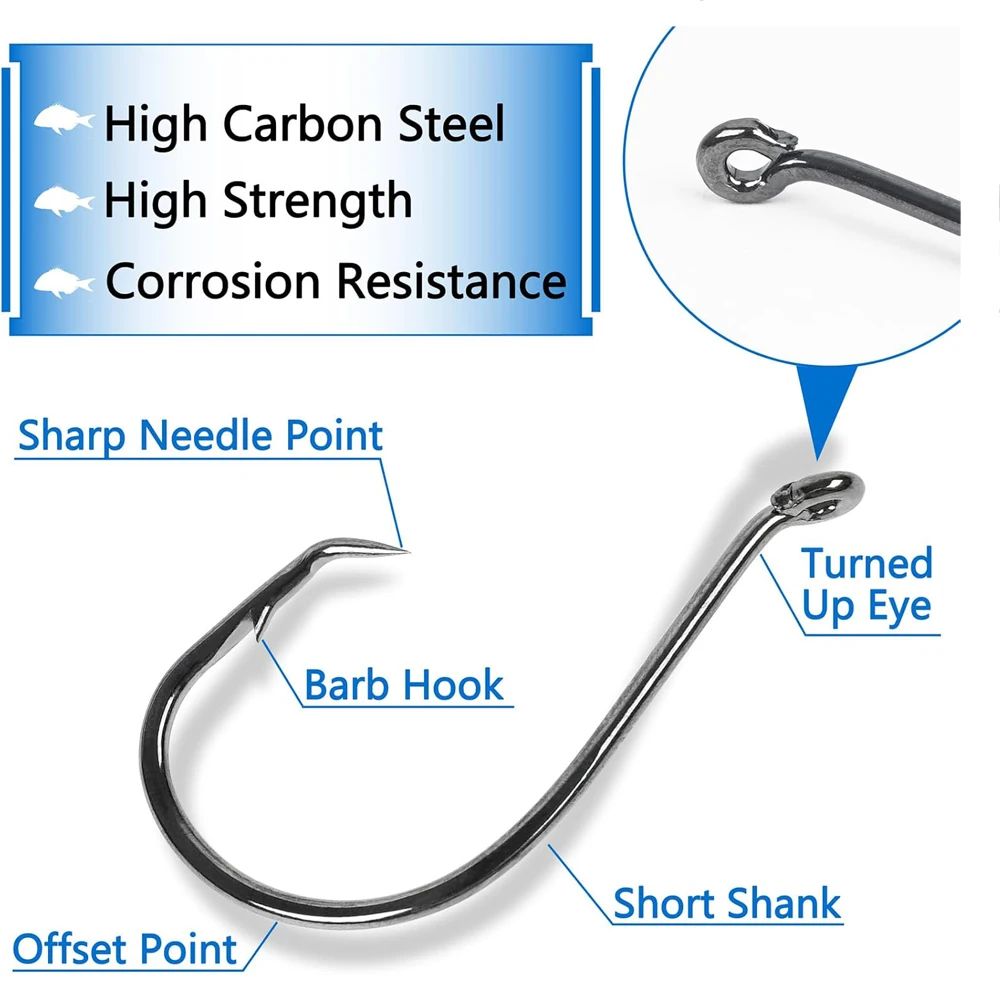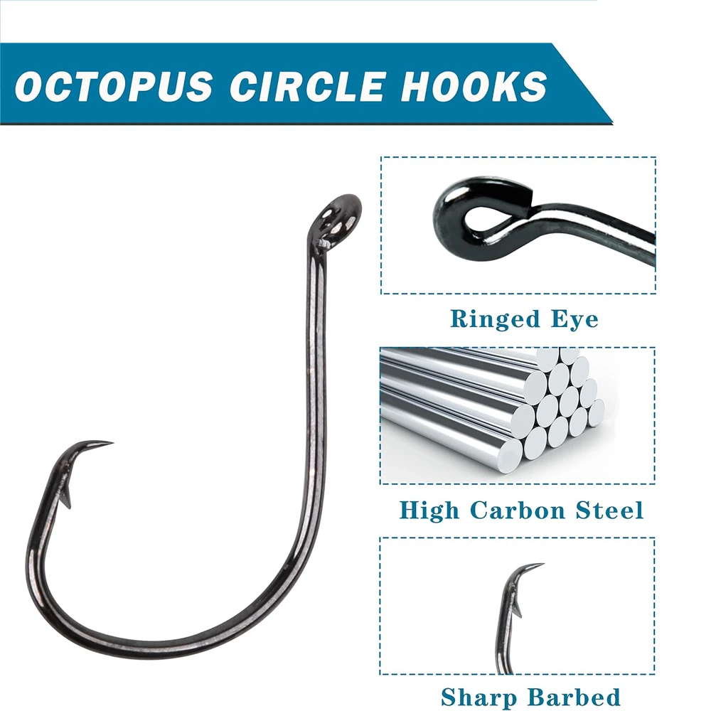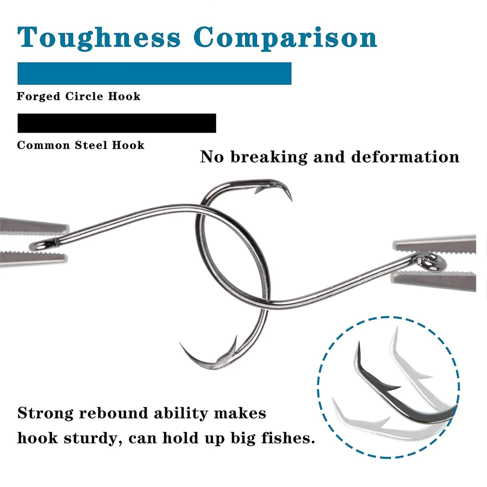 1.Los ganchos circulares están forjados con material de acero con alto contenido de carbono, con alta resistencia, fuerza de tracción, dureza y resistencia a la abrasión.También tiene una excelente resistencia a la corrosión y se puede utilizar tanto para la pesca en agua dulce como en agua salada.