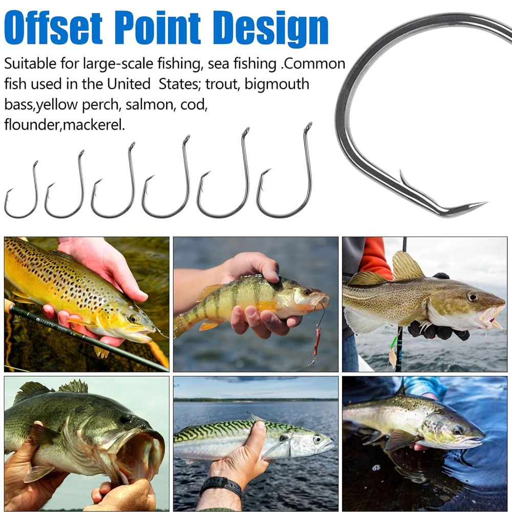 4. Ya sea como anzuelos de pesca de agua dulce y anzuelos circulares de agua salada, este anzuelo es adecuado para diversos entornos de pesca. Objetivo para lubina, lucioperca, trucha, salmón, pez sol, bagre de canal, bagre azul y bagre de cabeza plana, etc.