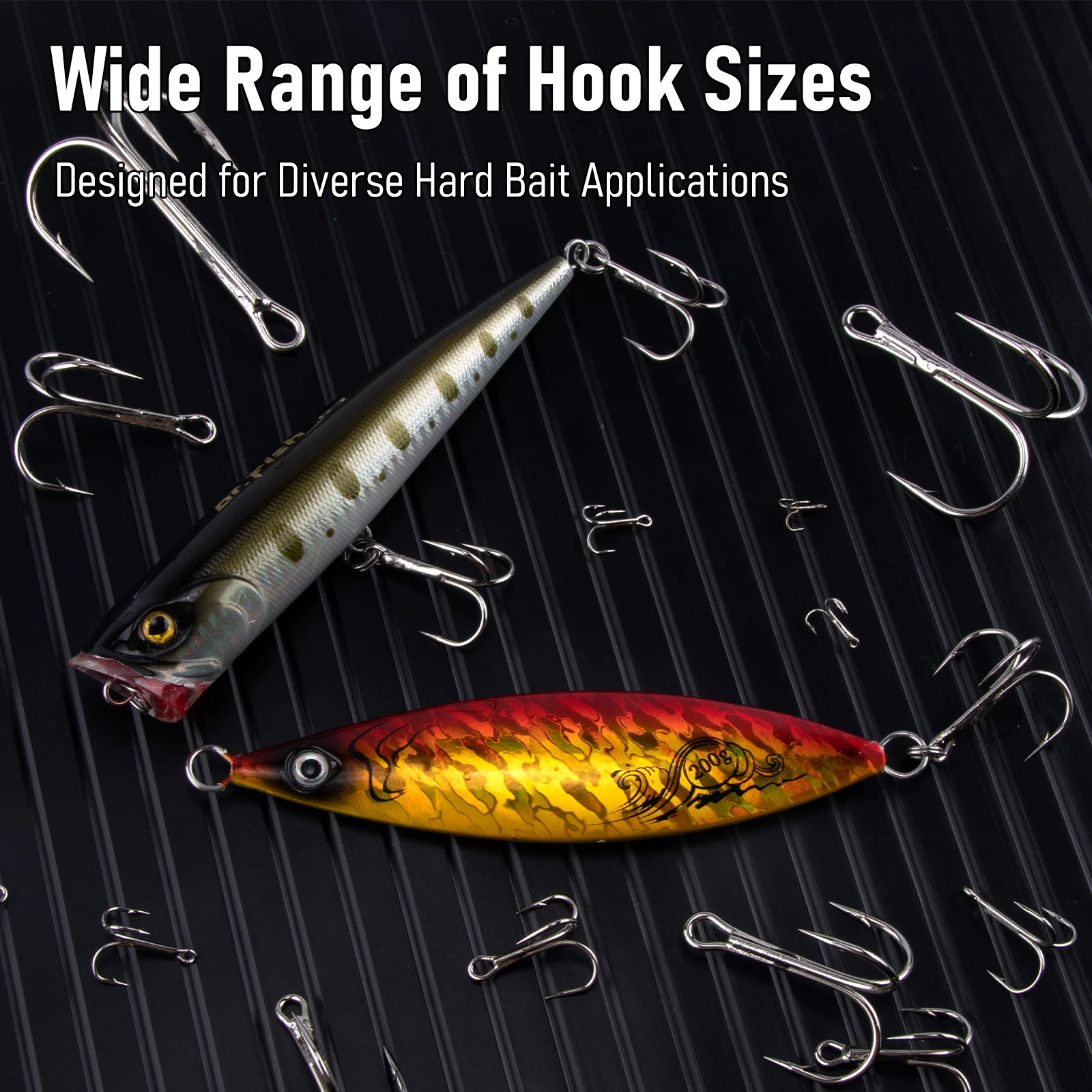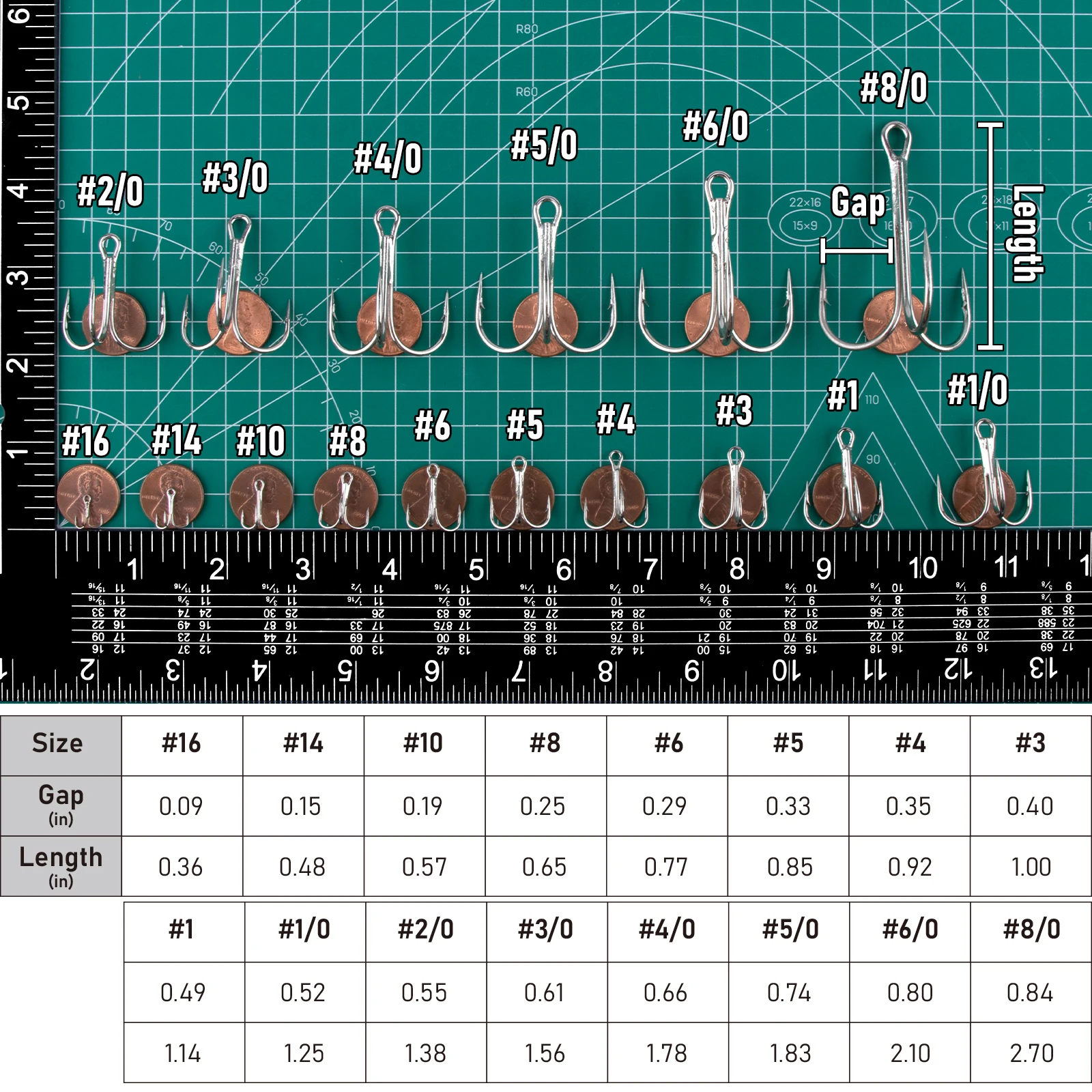 Múltiples tamaños: disponible en varios tamaños desde # 16 a # 8/0 para adaptarse a diferentes configuraciones de pesca, incluido el corte de salmón, el reemplazo del spinner o el emparejamiento con grandes cebos duros de agua salada.