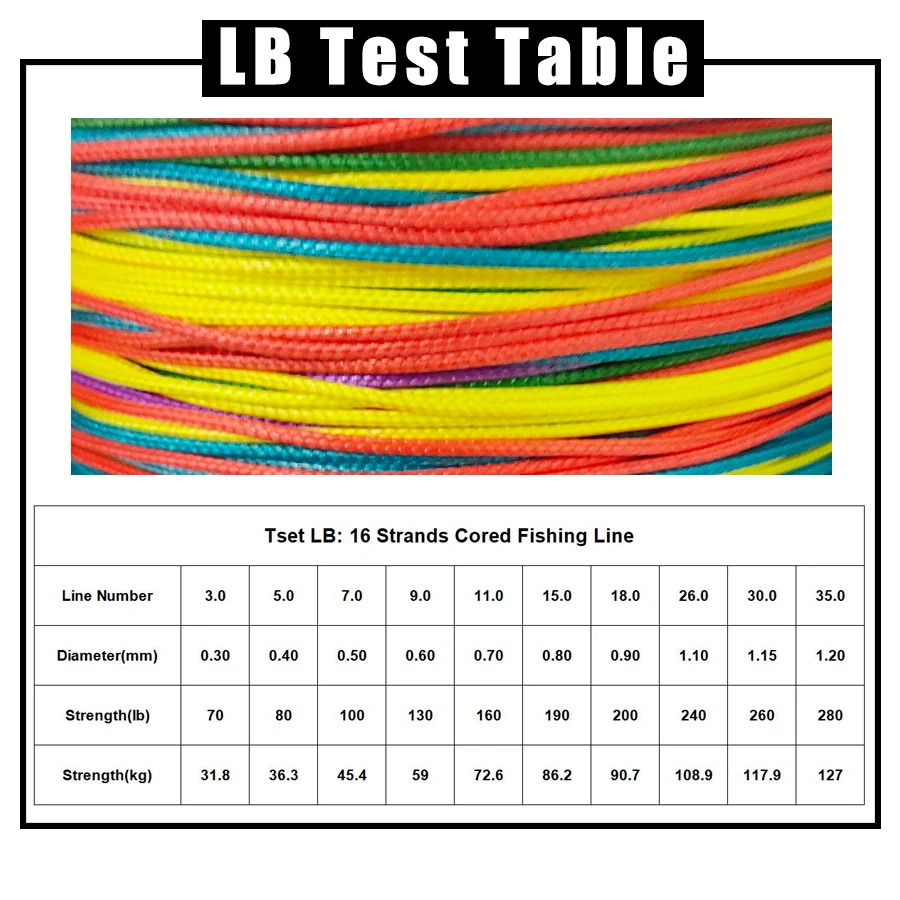 Línea de pesca trenzada con núcleo de 16 hebras Línea trenzada multifilamento multicolor Línea de pesca de alambre de acero 100 m 300 m Alambre de fregadero 16 trenzas + 4 construcción trenzada