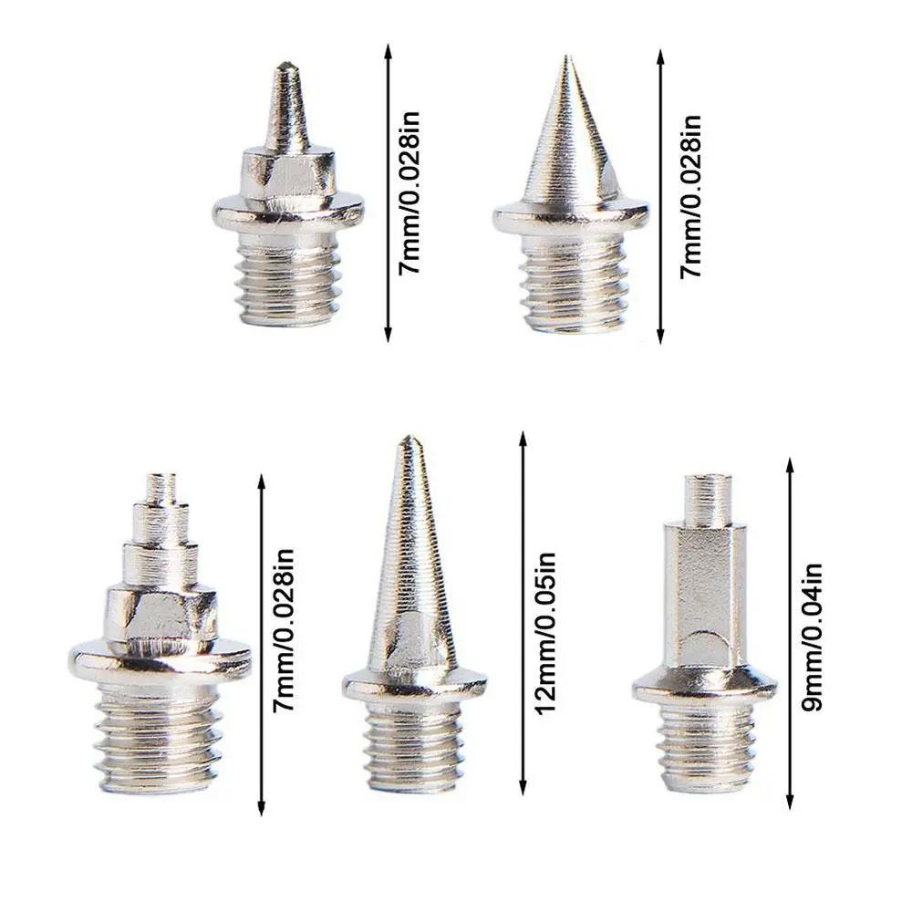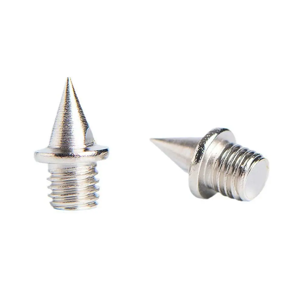 Made from high-quality materials, durable and long-lasting, ensuring that you can use them for multiple seasons. Our running shoe spikes are the perfect choice for runners of all levels and shoe types. These spikes can be easily attached to the sole of your shoe for enhanced grip and stability on any terrain. They are also lightweight and easy to install, making them a convenient and practical addition to your running gear. Whether you're running on a track, trail, or pavement, these spikes will help you maintain your footing and prevent slips and falls. Specifications: Material: Hard steel Thread diameter: 5mm Nail Length: 7mm(Short/Tower Studs/Pointed Studs), 12mm(Long Studs), 9mm(Jumping Studs) Style: Short Studs, Long Studs, Tower Studs, Pointed Studs, Jumping Studs Short Studs: suitable for plastic tracks running 100-400 meters, with strong grip(Short spikes are suitable for newer and harder tracks) Long Studs: used for coal cinder sand runways, because the land is very loose, to remember the effect of digging and pushing the ground, long nails must be used. Tower Studs: suitable for three-level jump hurdles in plastic tracks, with good elasticity and impact. Pointed Studs: suitable for plastic tracks of 100-400 meters, with strong grip [Sharp nails are suitable for older and softer tracks] Jumping Studs: suitable for the triple jump of high jump and long jump, standing jump, with good elasticity! Note: 1.Due to the light and monitors effect, colors may have lightly difference. 2.Please allow slightly size errors due to manual measurement. Thank you for your understand! Package Included: 16Pcs x Shoe Studs