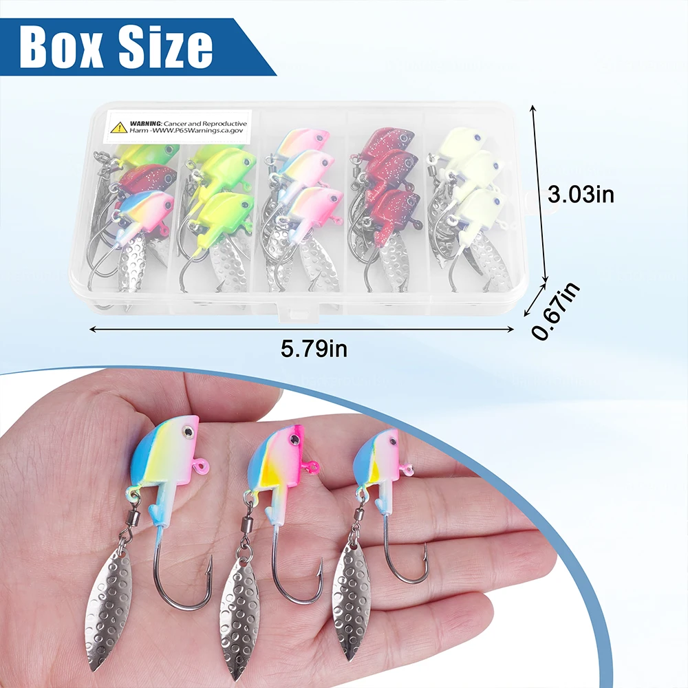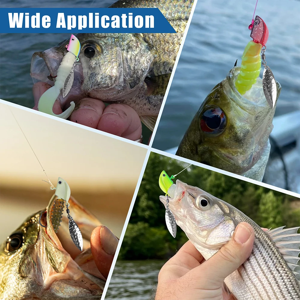 PERFIL DE BAITFISH REALISTA: Cabezas de pesca Con su perfil de cabeza de pez ultra realista, grandes ojos 3D, colores brillantes vivos y una hoja de hoja de sauce de tamaños perfectos, hace que la plantilla de pesca sea más atractiva para capturar más peces en todas las condiciones del agua.DISEÑO ÚNICO DE LA CABEZA: Ganchos de cabeza de plantilla de inserción moldeados con un diseño de plomo completo, el centro de gravedad oblicuo hacia abajo hace que las cabezas de plantilla siempre se mantengan en la parte inferior.recuperación suave en todos los entornos inferiores.Funciona muy bien y transmite rocas y madera sin engancharse fácilmente HOJA BRILLANTE EN FORMA DE RUIDO: Swimbait Jig Head con hoja de hoja de sauce. La hoja de sauce es larga y delgada unida por un giro de pesca de primera calidad, que produce un destello brillante y mantiene acciones continuas. a cualquier velocidad y cualquier profundidad. GANCHOS DURADEROS Y AFILADOS: Gancho giratorio ponderado hecho de acero al carbono resistente para una mejor penetración.El anzuelo puntiagudo es afilado, con mayor durabilidad y resistencia.Con el soporte del cebo, combina bien con remolques blandos, señale los cebos en su lugar.