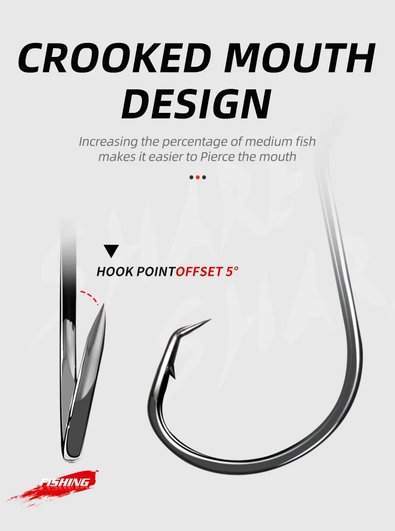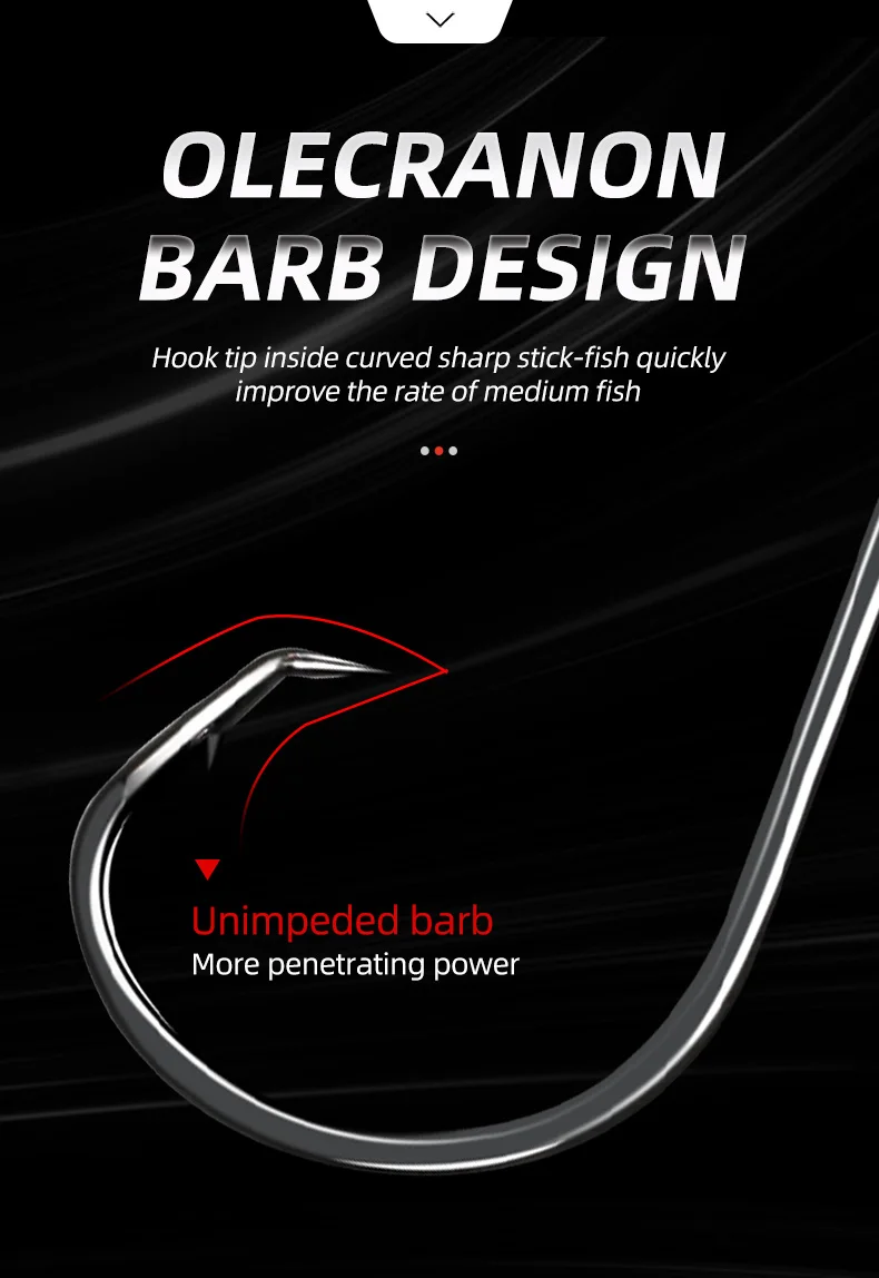 【Diseño único】Extremadamente afilado, Offset Ponit, Special Barb Hooks está diseñado para garantizar que la punta del anzuelo ruede en la esquina de la boca del pez y reduzca la mortalidad de los peces.
