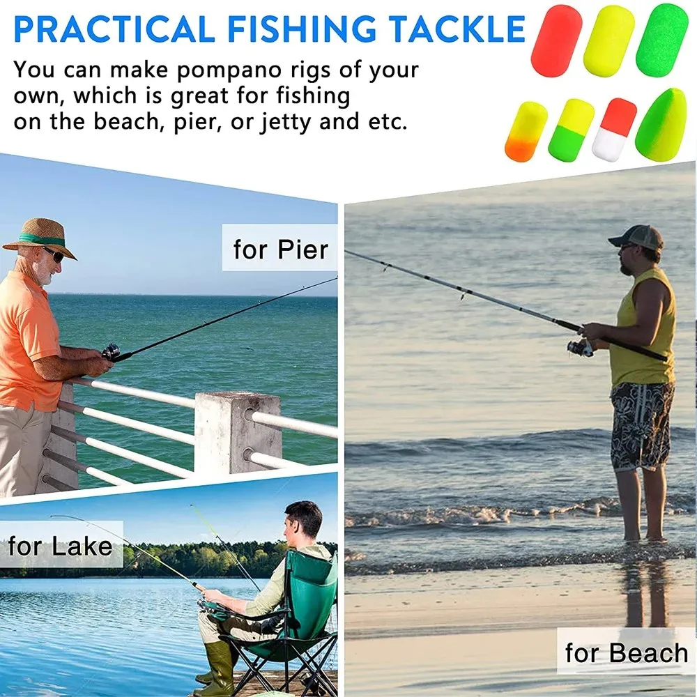 Flotadores de varios estilos: hay 7 estilos de estos flotadores de espuma de pompano. Flotan el cebo en la parte inferior, los colores brillantes agregan atracción adicional a su equipo y permiten a los depredadores ver su equipo desde una distancia mayor.