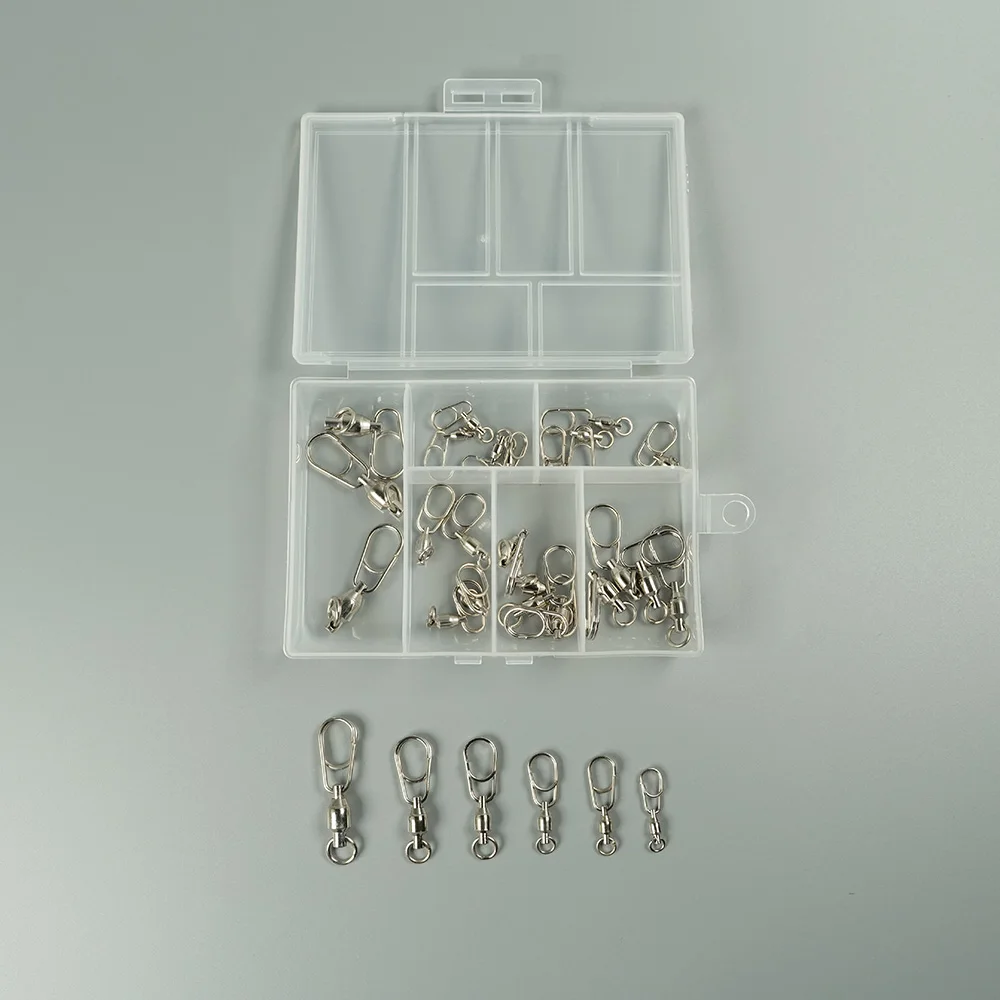• Clips de acero inoxidable: Los clips de acero inoxidable son resistentes a la corrosión, lo que garantiza que sus accesorios de pesca permanezcan en buenas condiciones.