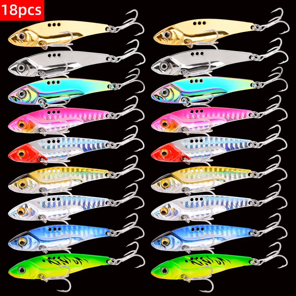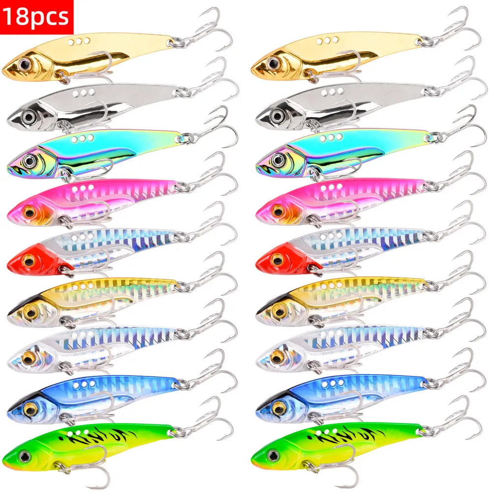 18 Uds cuchara giratoria plantilla de Metal cebo 7g-30g VIB hoja de hundimiento anzuelo triple giratorio Pesca Lucio carpa señuelo de Pesca de mar