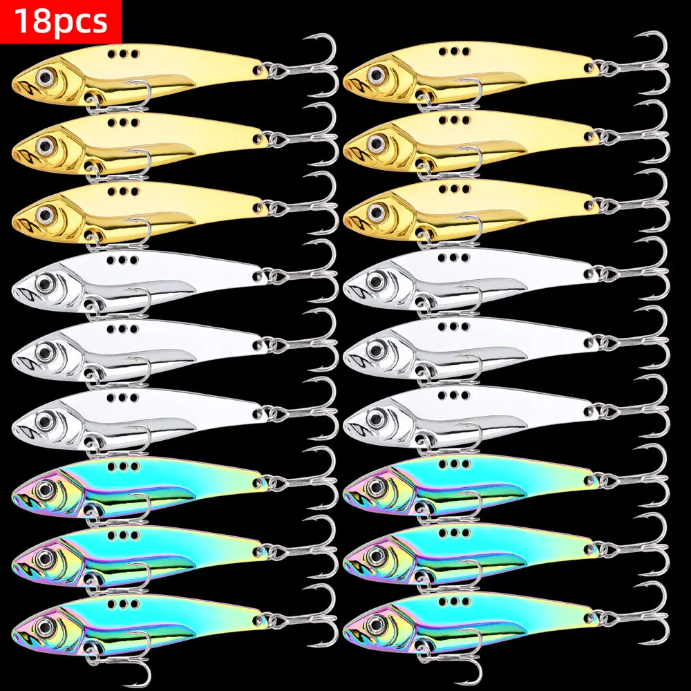 18 Uds. Kit de Señuelos de Pesca con cuchara giratoria VIB de Metal de invierno, plantillas de 5g-30g, anzuelo triple, vibración, Swimbait, Pesca, lubina, perca