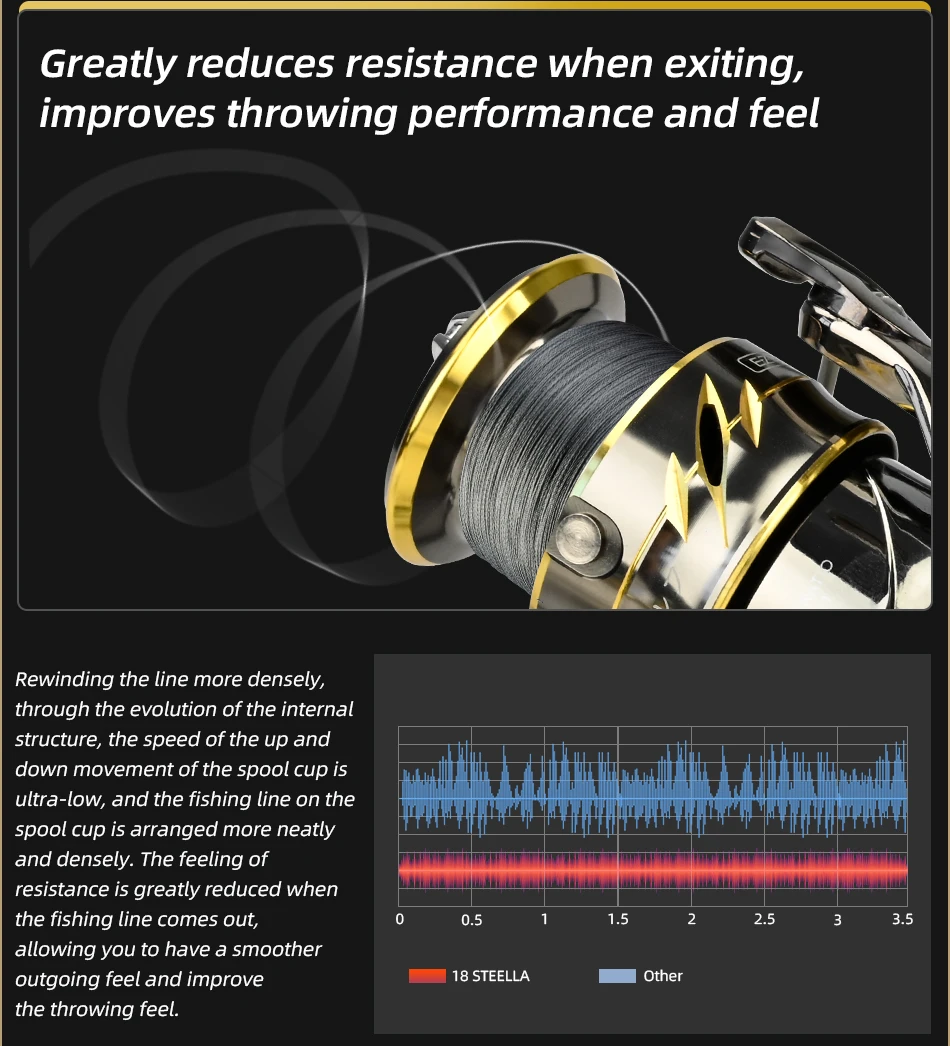 3. La serie Stella tiene un diseño único de protección resistente al agua para su carrete, cuerpo y rotor.