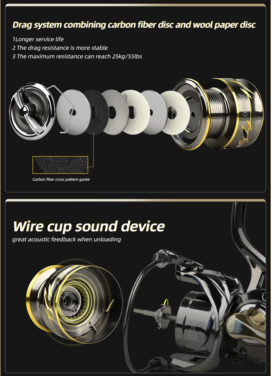 6. El diseño ultrafino del cuerpo y el carrete de aluminio mecanizado por CNC son ideales para pescar durante mucho tiempo.