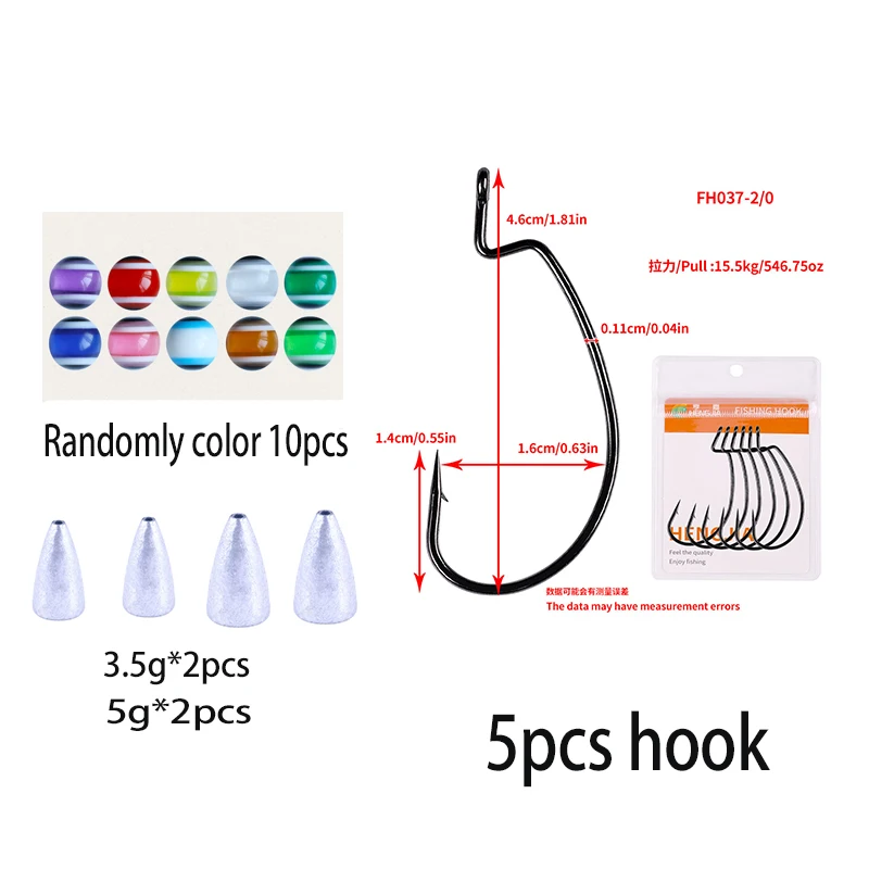 19 Uds. Plomo de bala de peso de plomo mixto con cuentas de tapón y kit de ganchos para accesorios de señuelos blandos